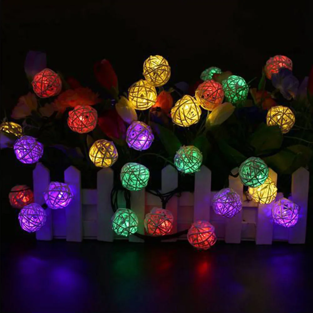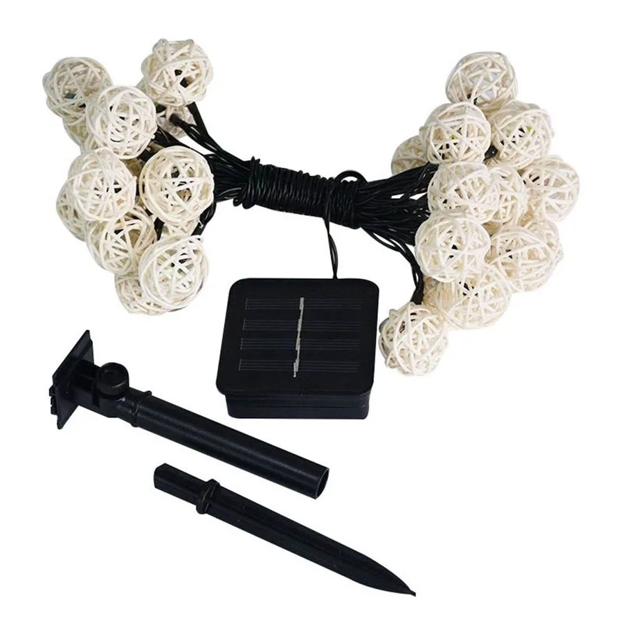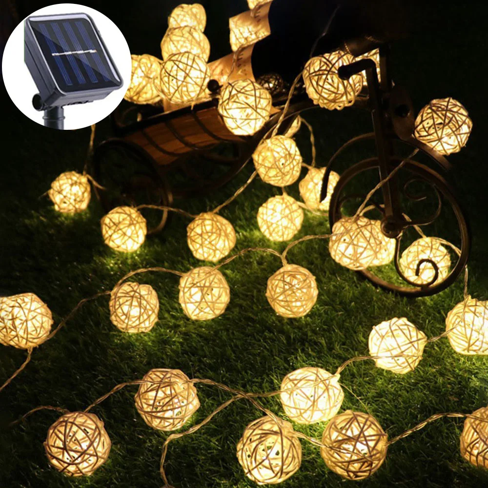 Гирлянда из ротанга с шариками на солнечной батарее, уличная Праздничная лампа-Гирлянда для свадьбы, Нового года, Рождества, праздничное украшение, 203050 светодиодов