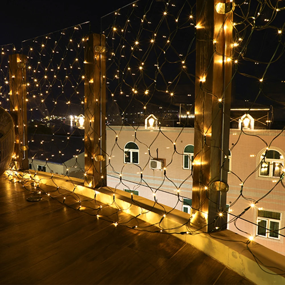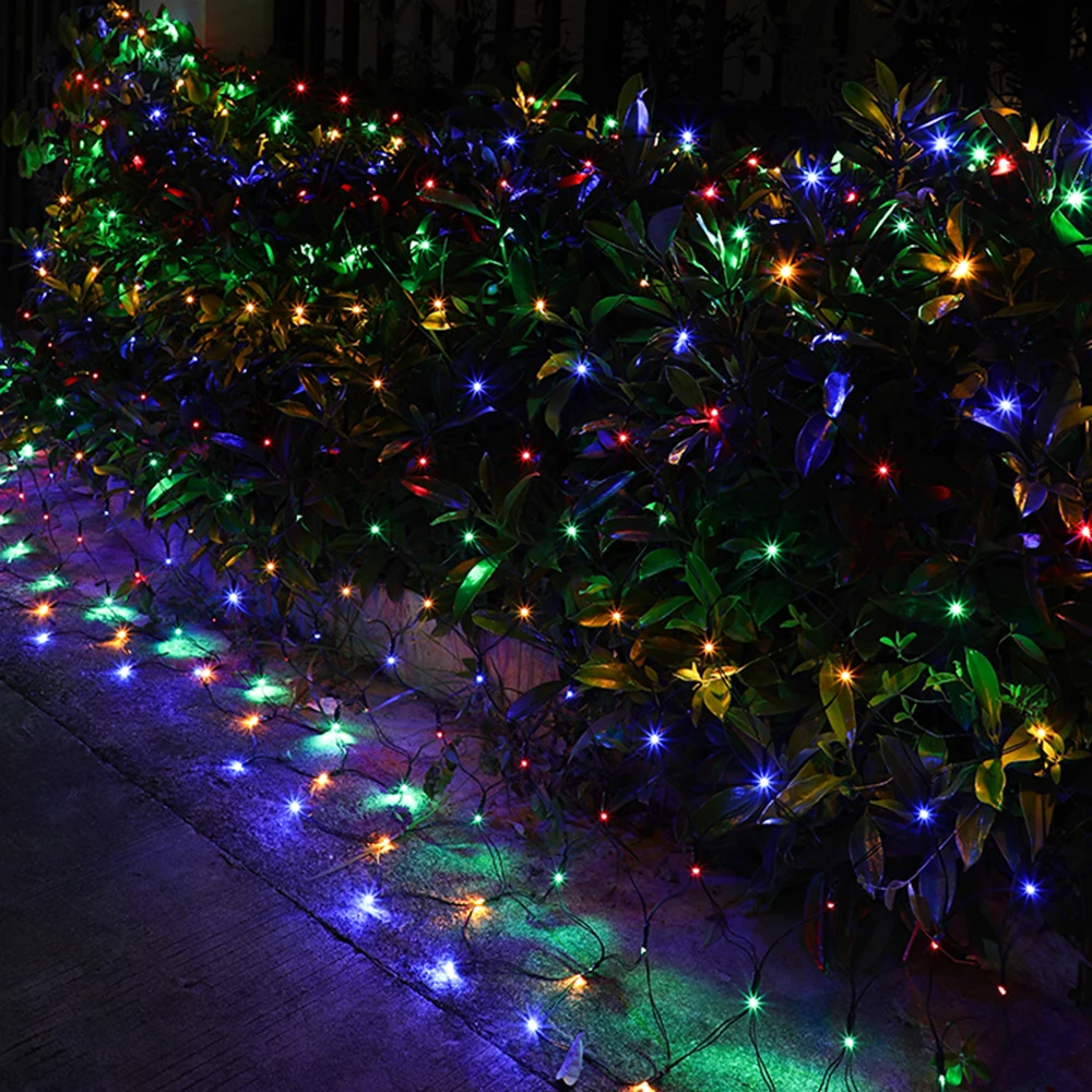 Рождественская сетчатая лампа на солнечной батарее, 2x3 м, 200 светодиодов, 8 режимов, уличная садовая гирлянда для газона, украшение для свадебной вечеринки
