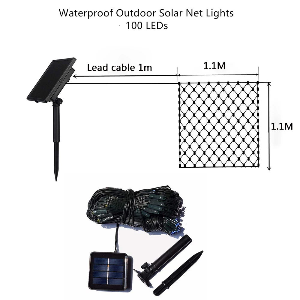 Рождественский сетчатый светильник на солнечной батарее s 2x3 м 200 светодиодов 8 режимов на солнечной батарее, садовый светильник на лужайке для украшения свадебной вечеринки