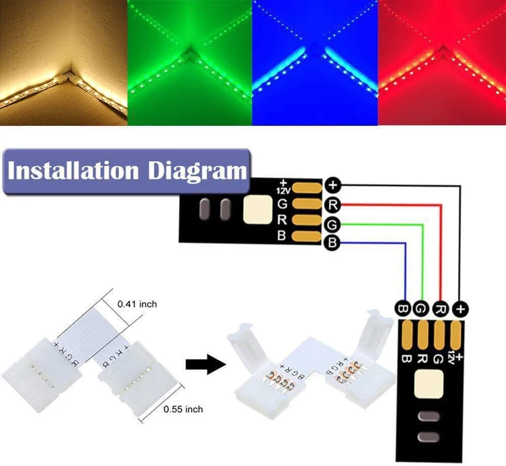 20105 шт. 10 мм 4-контактный L-образный разъем RGB Светодиодная лента 90 градусов угловые разъемы для 5050 28353528 RGB светодиодной ленты