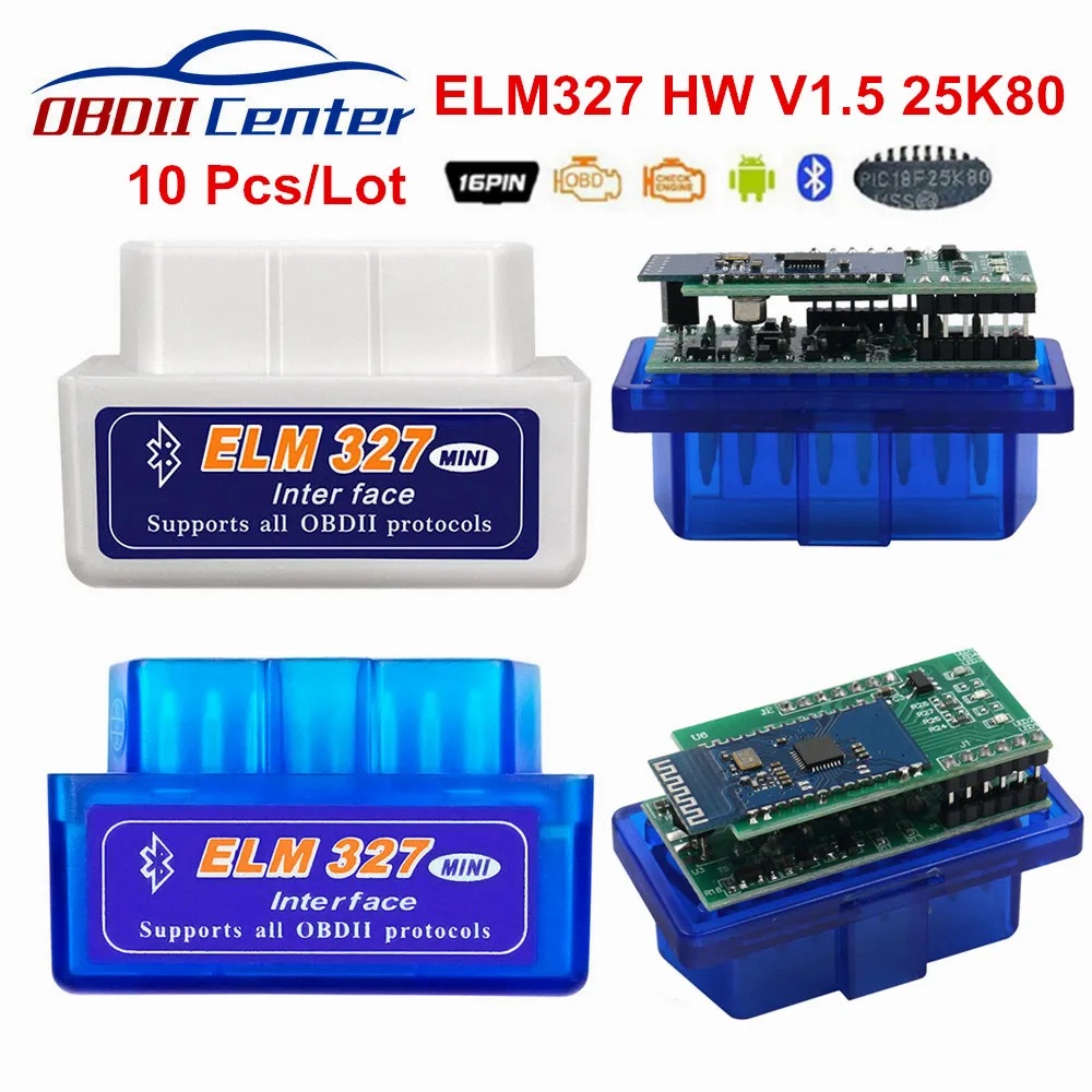 Диагностический сканер OBD2, ELM327 1,5, 20 шт.лот, Bluetooth, OBDII ELM 327 V1.5 PIC18F25K80, ELM327 V1.5 25K80 OBD 2, адаптер диагностики