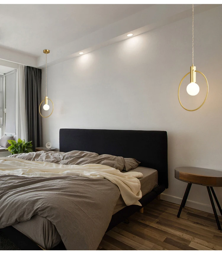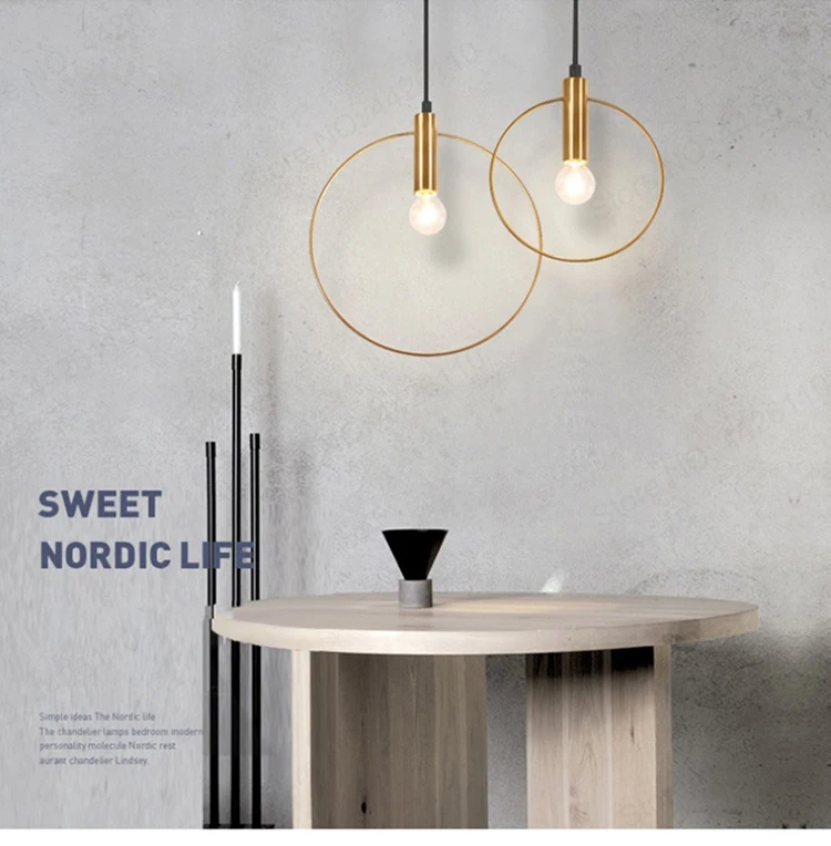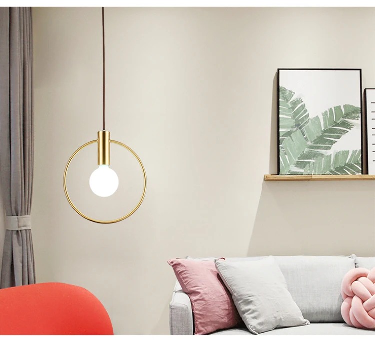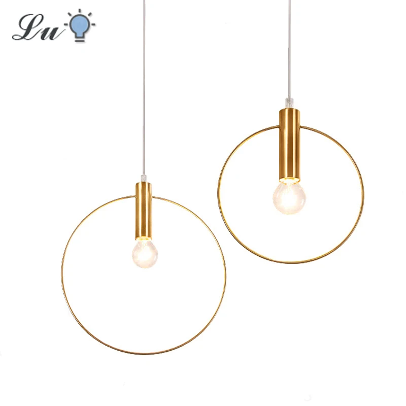 Круглые золотые подвесные светильники, светодиодное украшение для дома, Подвесная лампа, прикроватные светильники для спальни, 90-260 В, освещение для гостиной, ресторана, внутреннего освещения