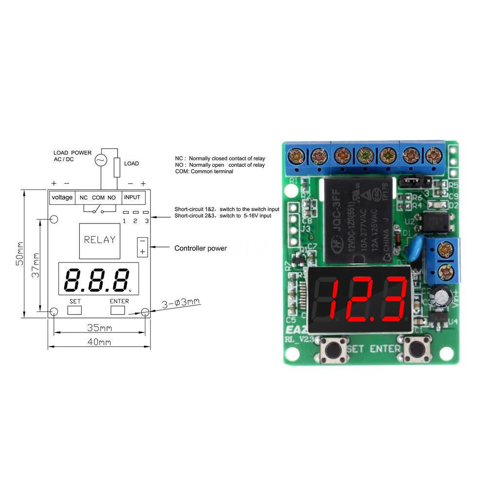 Плата контроль релейного переключателя цифрового релейного модуля, светодиодный модуль с обнаружением напряжения, зарядный монитор выгрузки постоянного тока, 12 В, 24 В, 0-99,9 В постоянного тока
