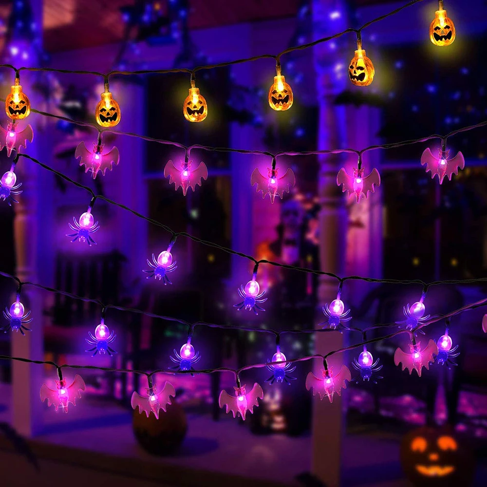 Хэллоуин светильник s гирлянды 10/20 светодиодный Тыква Человек-паук и Бэтмен череп светильник Батарея работает для внутреннего и наружного спорта для праздников и вечеринок украшения