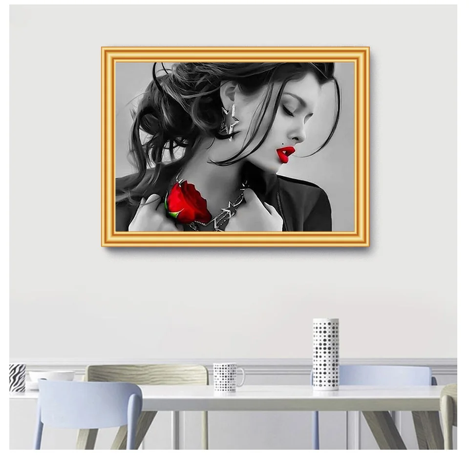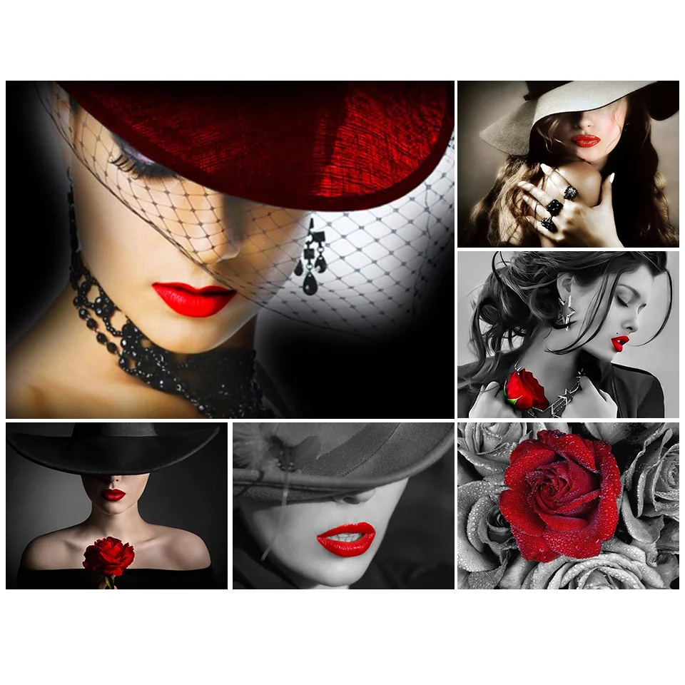 Полноразмерная Алмазная вышивка, портрет красивая женщина красная шляпа и красные губы 5D алмазная живопись мозаика картина Стразы Декор