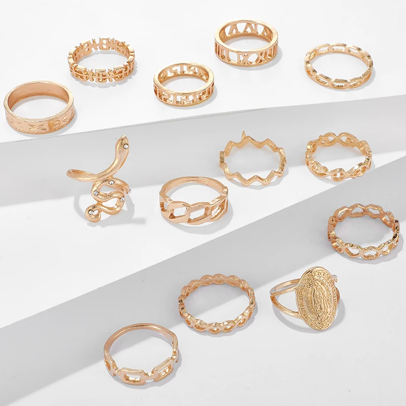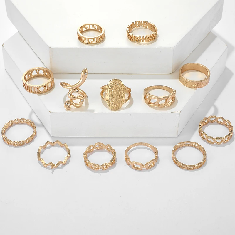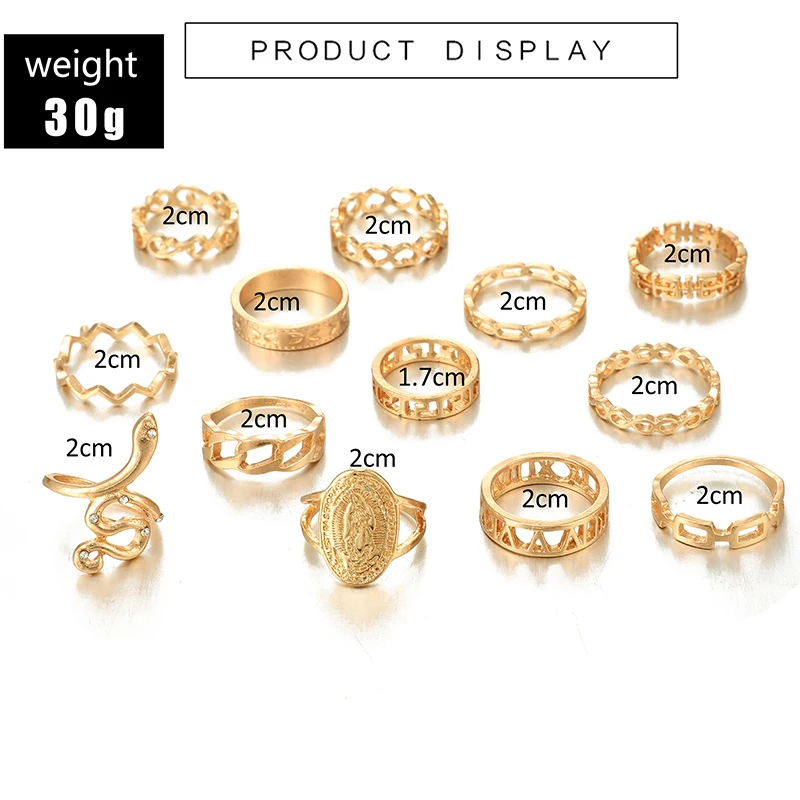 Docona 13 шт.компл. набор колец на кулаки змеи в форме сердца для женщин, стразы, золотые кольца, ювелирные изделия 14458