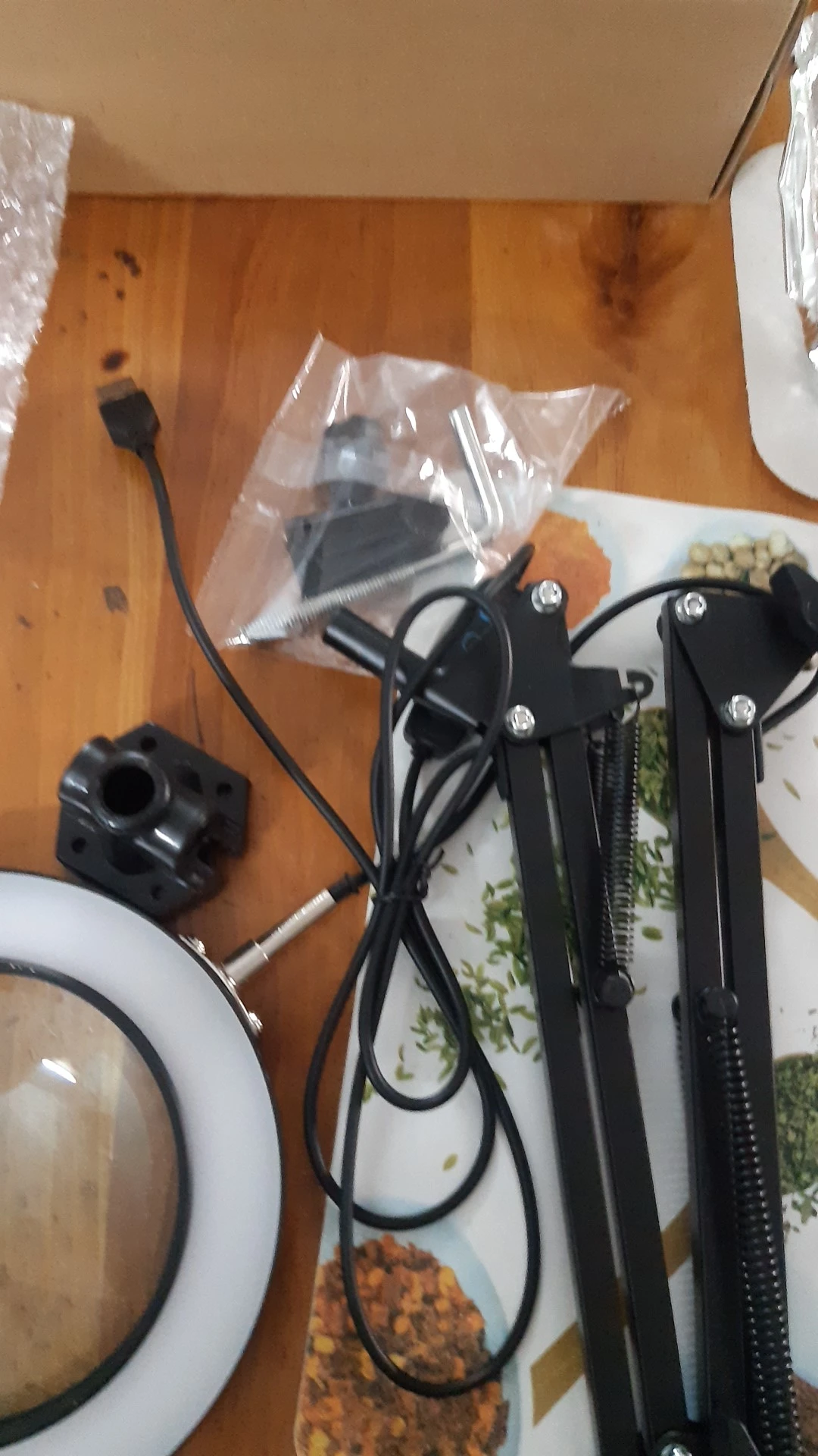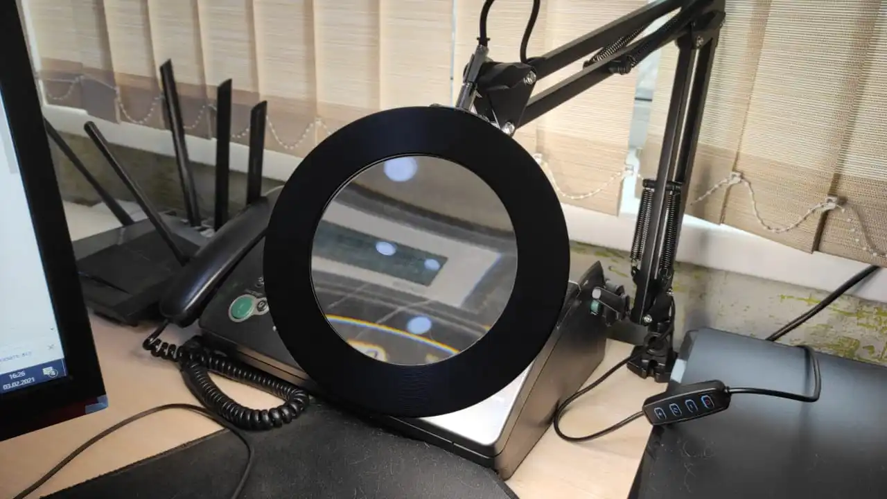 Сегодня спустя почти три месяца получил долгожданную посылку. Упаковка хоть и помята, но лампа пришла целая и в рабочем состоянии. Имеется три тона подсветки с регулируемым диммером. Качество самой лампы нормальное, а вот крепление на стол просто ужасное, оно болтается даже на максимальной затяжке. Производителю надо срочно его доработать. Управление лампой тоже неудобное, хотелось бы видеть его на рамке увеличительного стекла. Шнур тоже коротковат, на 50 см длиннее было бы лучше. Ну и конечно хочу обратить внимание продавца на логистику, так работать нельзя, я понимаю, что в связи с пандемией сроки доставки увеличиваются, но не настолько же. Выложил фото крепления, которое прочно будет фиксировать лампу, ну и саму лампу.