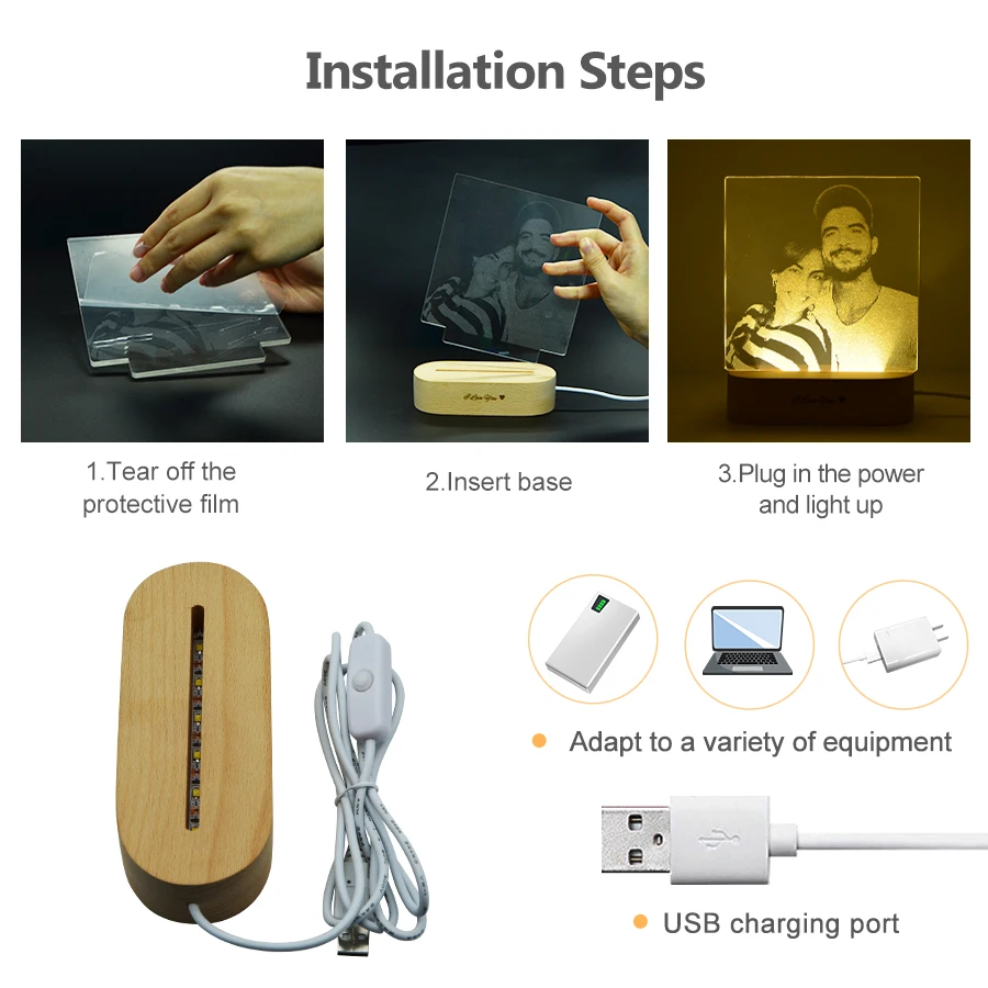 Дропшиппинг фототекст на заказ 3D ночсветильник настольная лампа деревянное основание Рождество День Святого Валентина подарок USB мощность пользовательская лампа