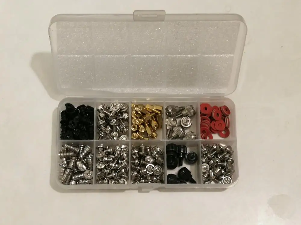 Хороший набор болтиков. Для сборщиков пк, самое то что нужно. Пришли за 10 дней в Курск. Качество отличное. Спасибо.