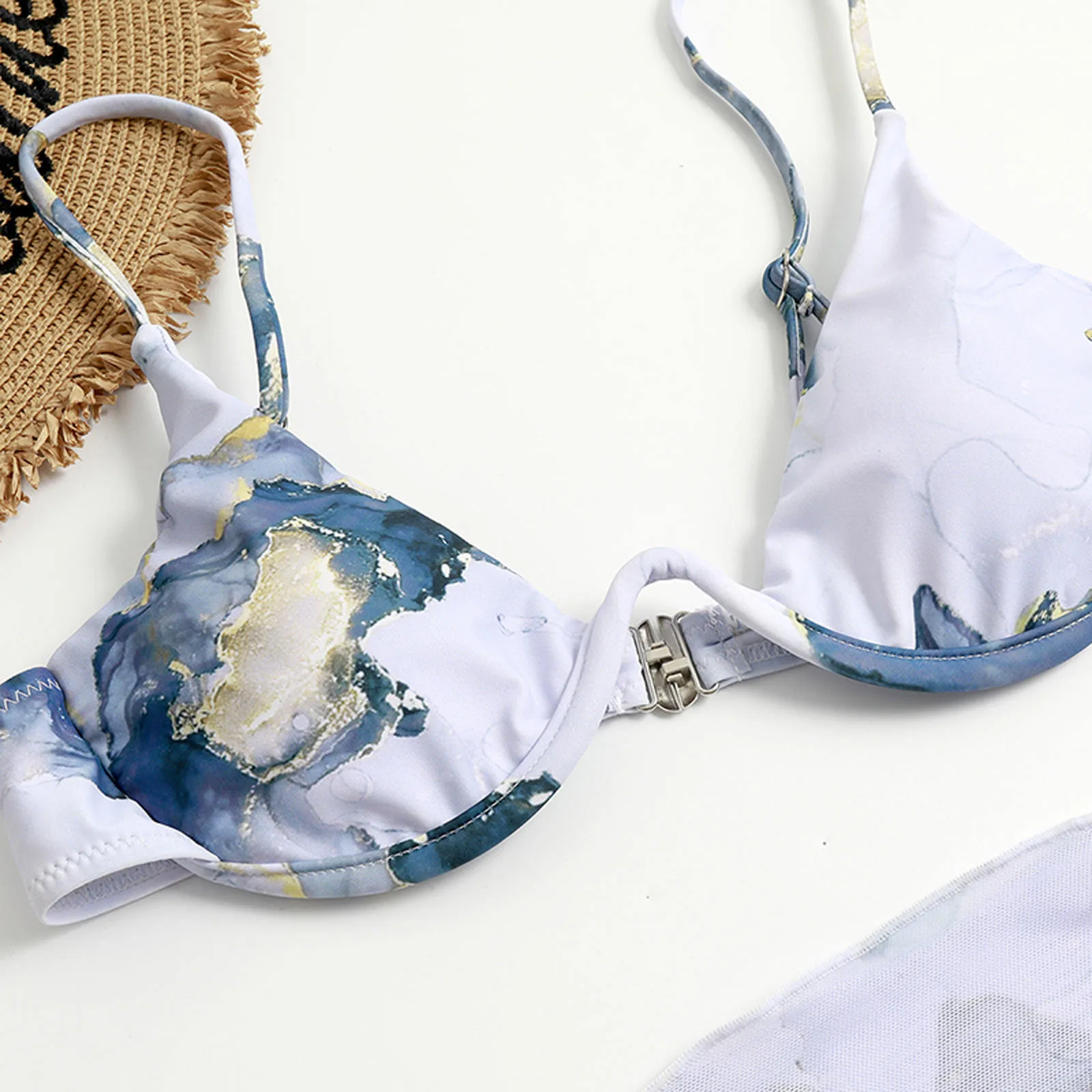 Купальный костюм-тройка женский, пикантный комплект бикини с мрамор...