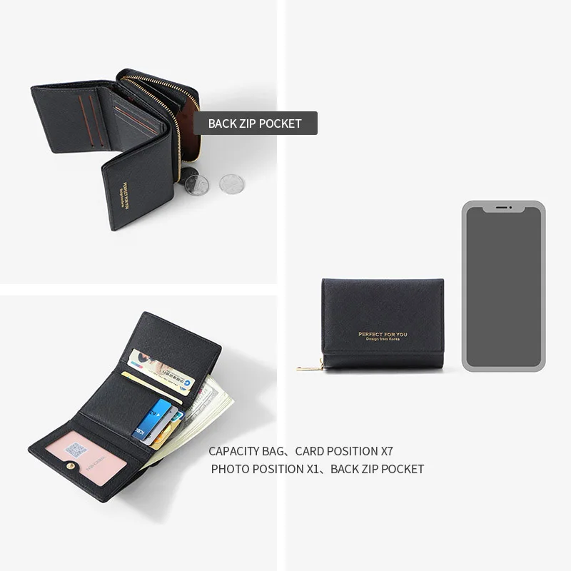 Кошелек женский, компактный, из мягкой кожи, на молнии, с отделением для монет