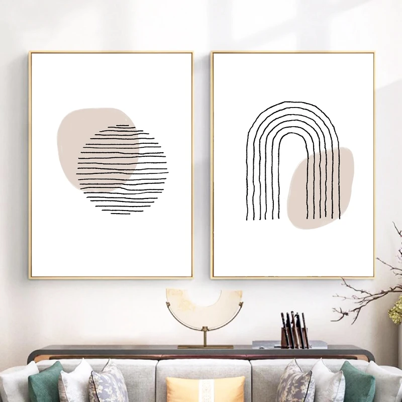 Радуга абстрактная живопись круг Геометрия линии современный минималистский принт нейтральная Настенная картина скандинавский плакат домашний декор комнаты