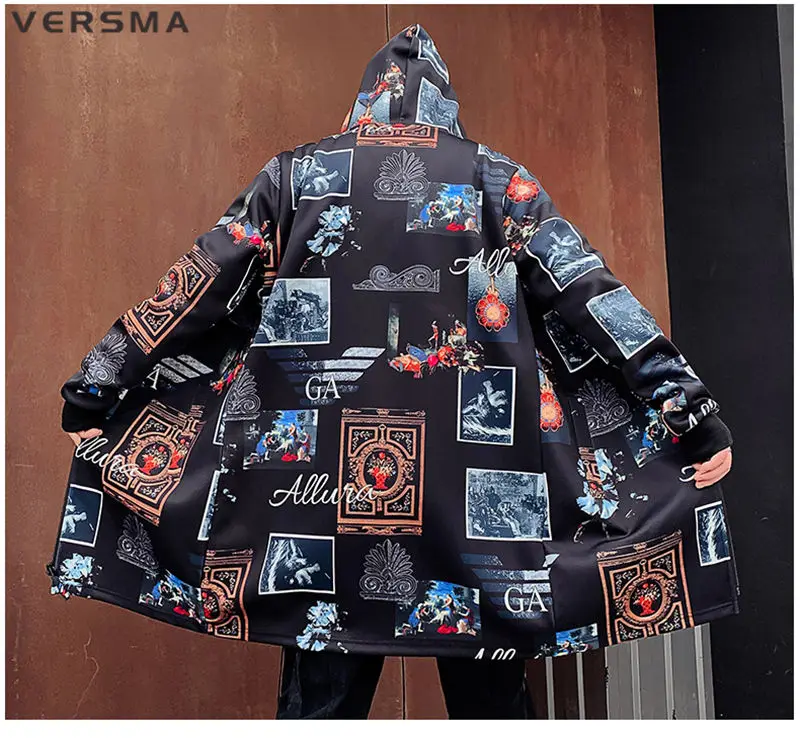 Мужской длинный тренчкот с капюшоном VERSMA, в стиле Харадзюку, в готическом стиле, весна, 5XL