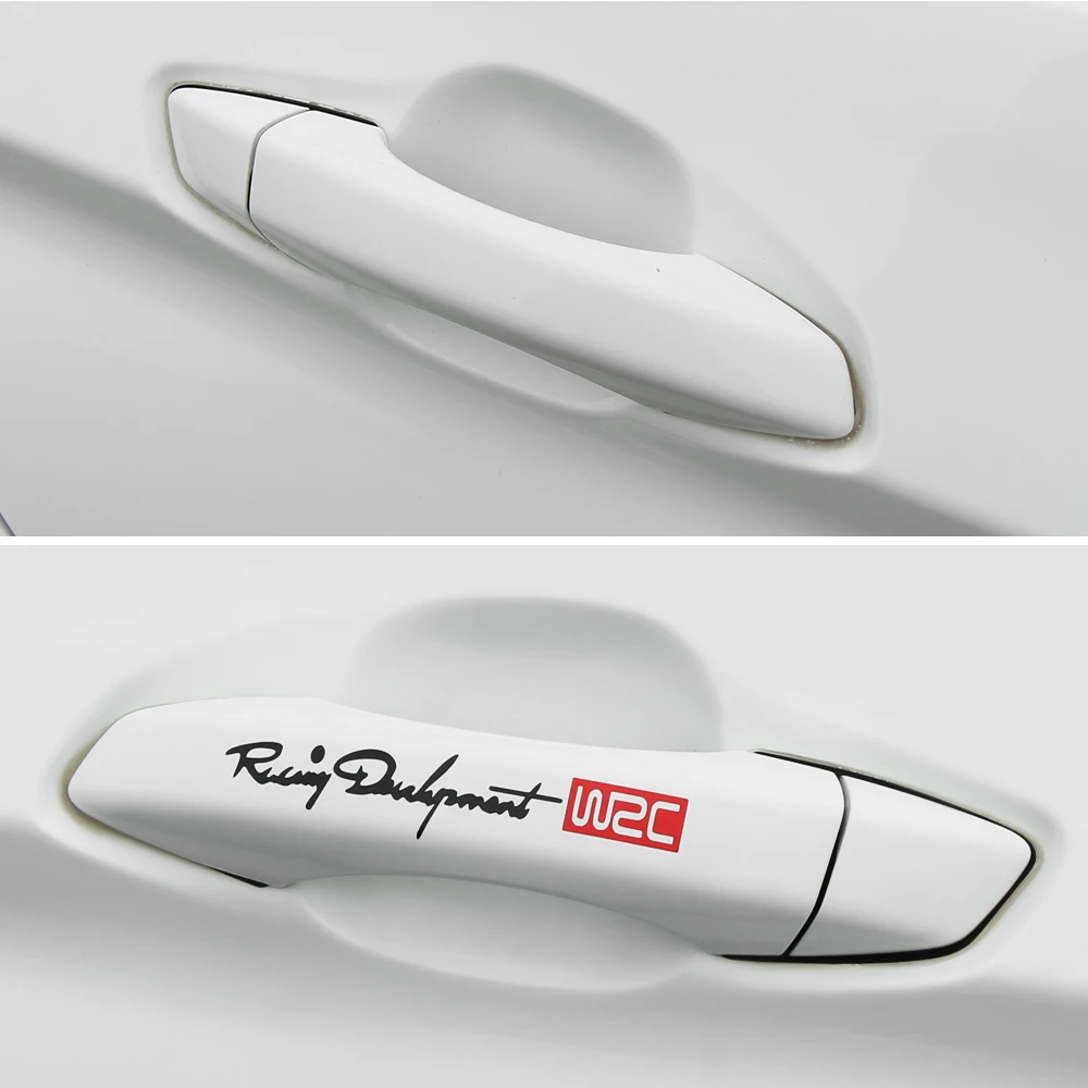 4 шт. автомобильный Стайлинг WRC World Racing Development креативные наклейки на дверные ручки автомобиля двухцветный дизайн виниловые наклейки