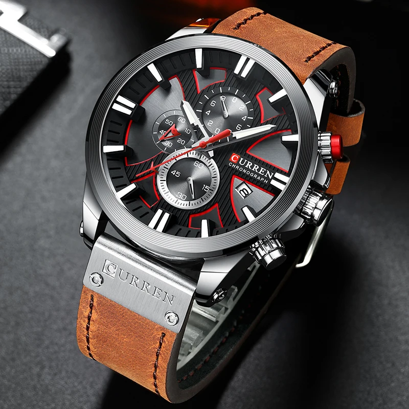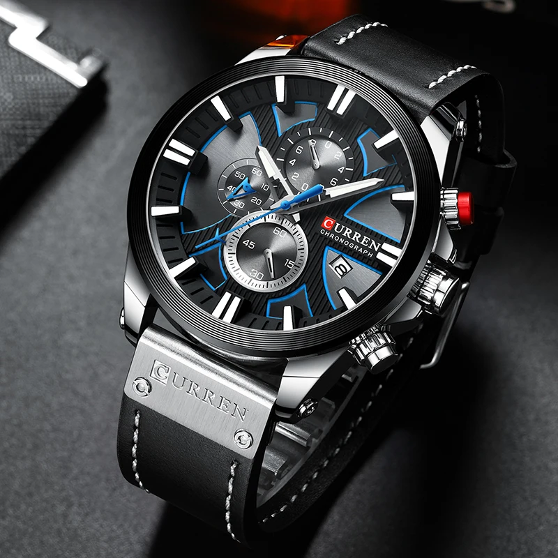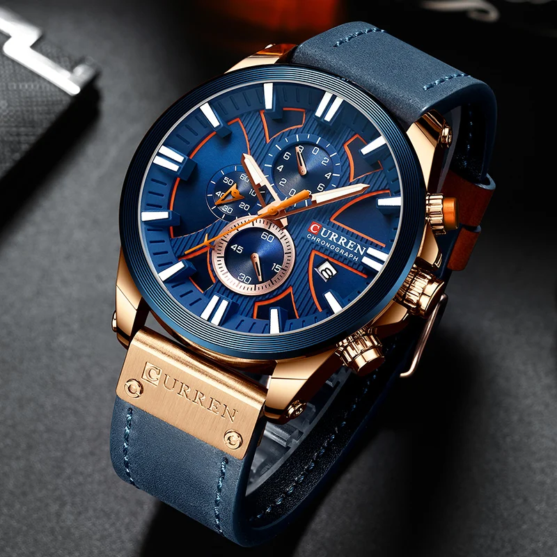 CURREN люксовый бренд, мужские часы с хронографом, деловые часы, мужские кожаные кварцевые часы, мужские спортивные наручные часы, Relogio Masculino