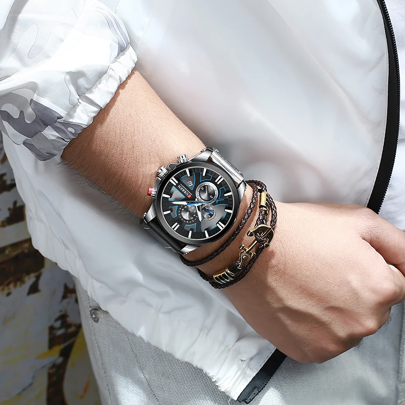 Часы мужские кварцевые с хронографом, кожаным ремешком