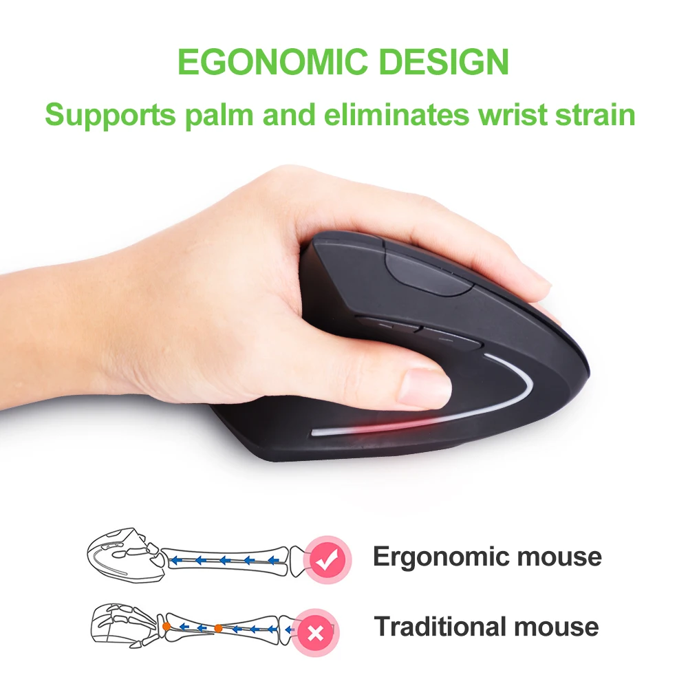 Lefon Беспроводная игровая мышь Вертикальная мышь эргономичная оптическая 800 1200 1600 DPI 6 кнопок 2,4 GHz мышь для ПК ноутбука мыши