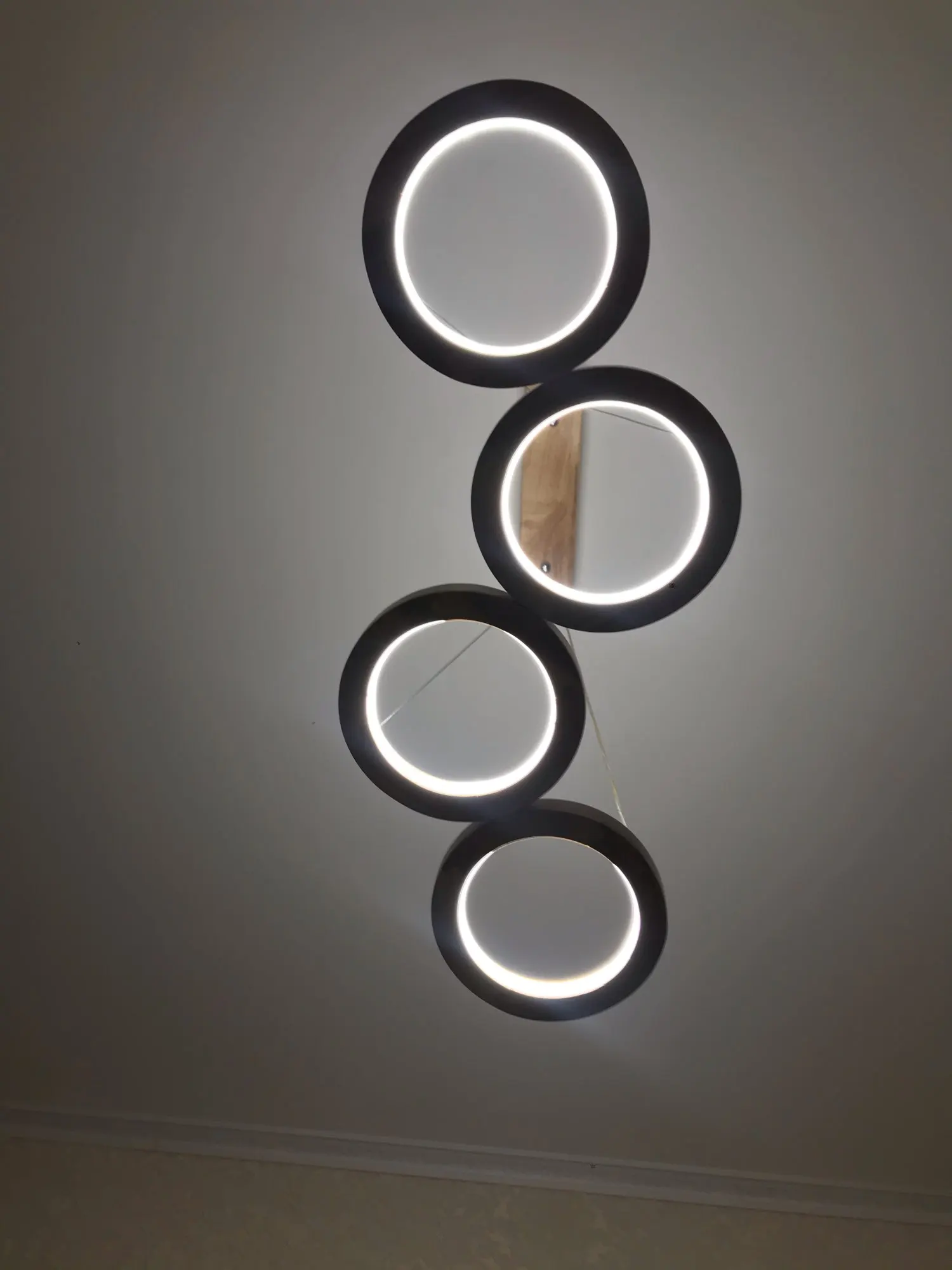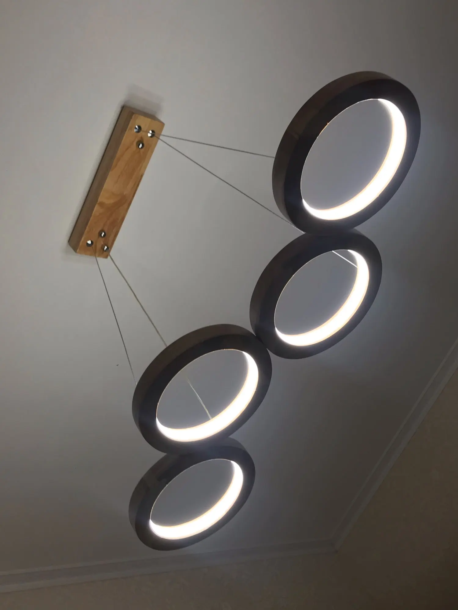 Купила люстру 4 кольца. В описании рассчитано на 5-10 м2, но не больше. Для моего обеденного стала оказалась маленькой и думала что будет светить ярче, поэтому повесили в коридор. Упаковано хорошо, ничего не повредилось. В коробке отсутствует описание, поэтому пришлось самим догадаться как все работает. У пульта отсутствуют батарейки. Хотела белый свет, но он только в комплекте с пультом, пришлось переплатить ради этого. Люстра приобретена за 7300 ₽, но это дороговато для этой люстры. Удобно, что все провода спрятаны в коробочку у потолка, но не получилось прикрепить плотно к потолку, т.к. гайки прокручиваются. Люстра симпатичная, из-за ее дизайна и направления света - на стенах полоска тени. Люстра легкая, держится на потолке из гипсокартона. Тросы длинные, можно отрегулировать высоту. Если случайно затянули, то нужно нажать снаружи на саму железку как на кнопку и тогда трос можно вытянуть обратно. Посылка шла 1,5 месяца, хотя примерные сроки доставки были значительно быстрее.