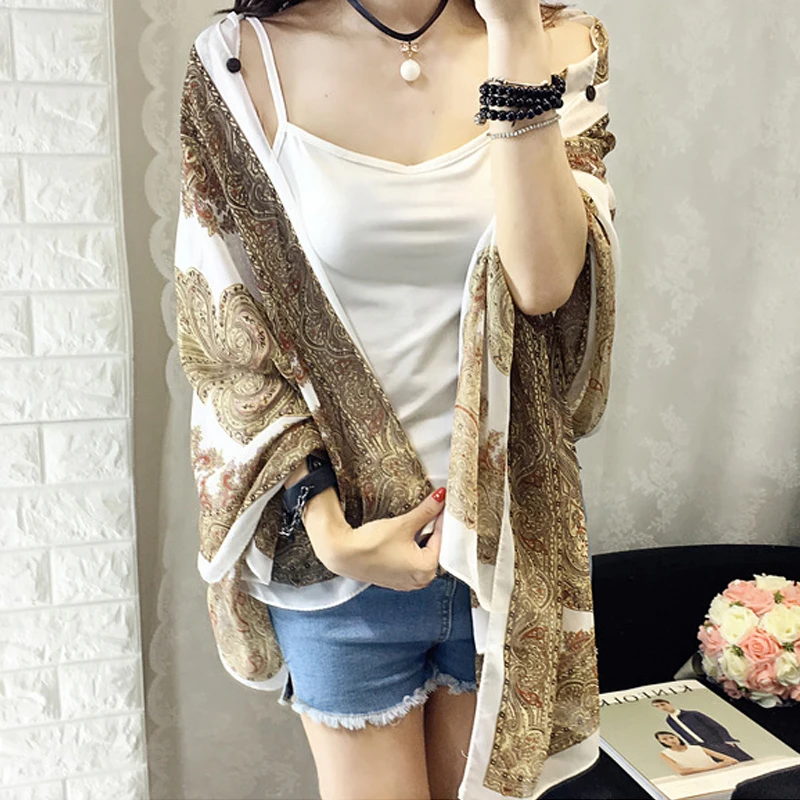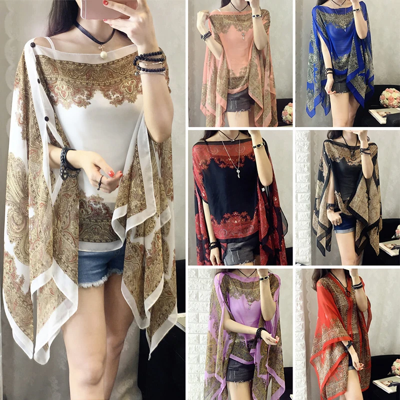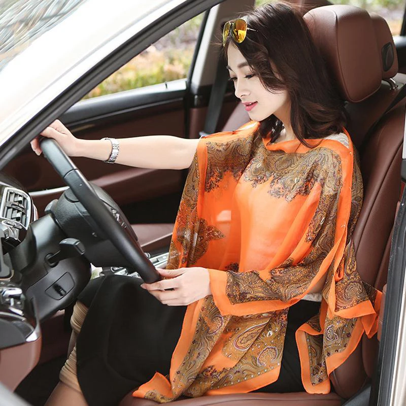 2020 шарфы с цветочным принтом летнее шифоновое пончо накидка женская элегантная шаль Женская шелковый шарф для защиты от солнца