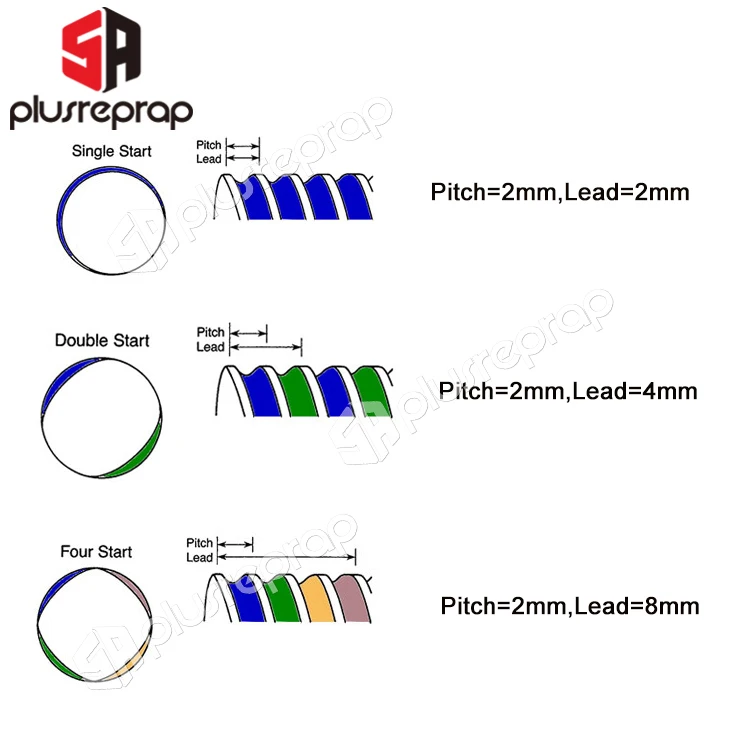 Свинец 4 мм-Шаг 4 мм-Гайка вращает круг на 4 мм Свинец 2 мм-Шаг 2 мм-Гайка вращает круг на 2 мм