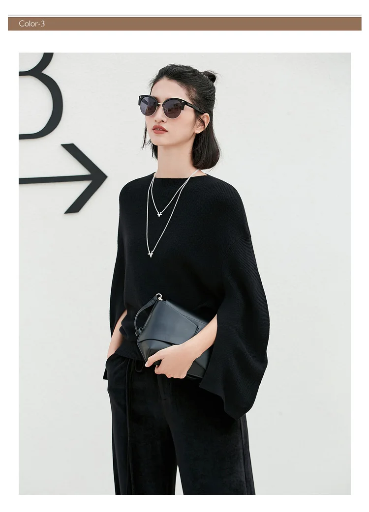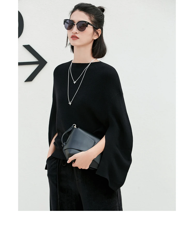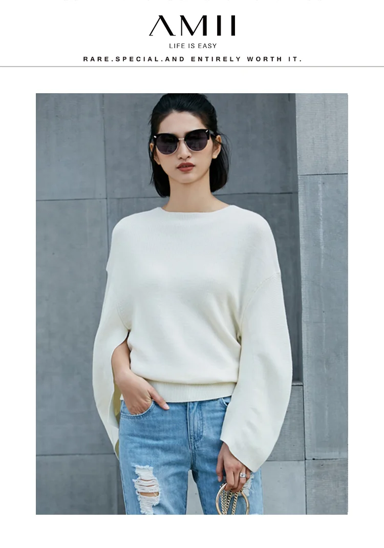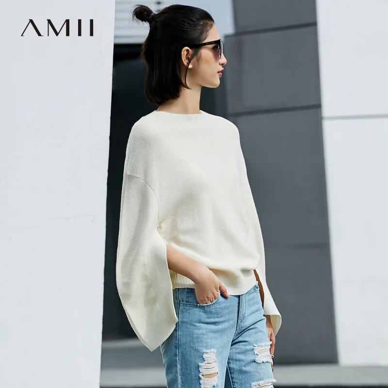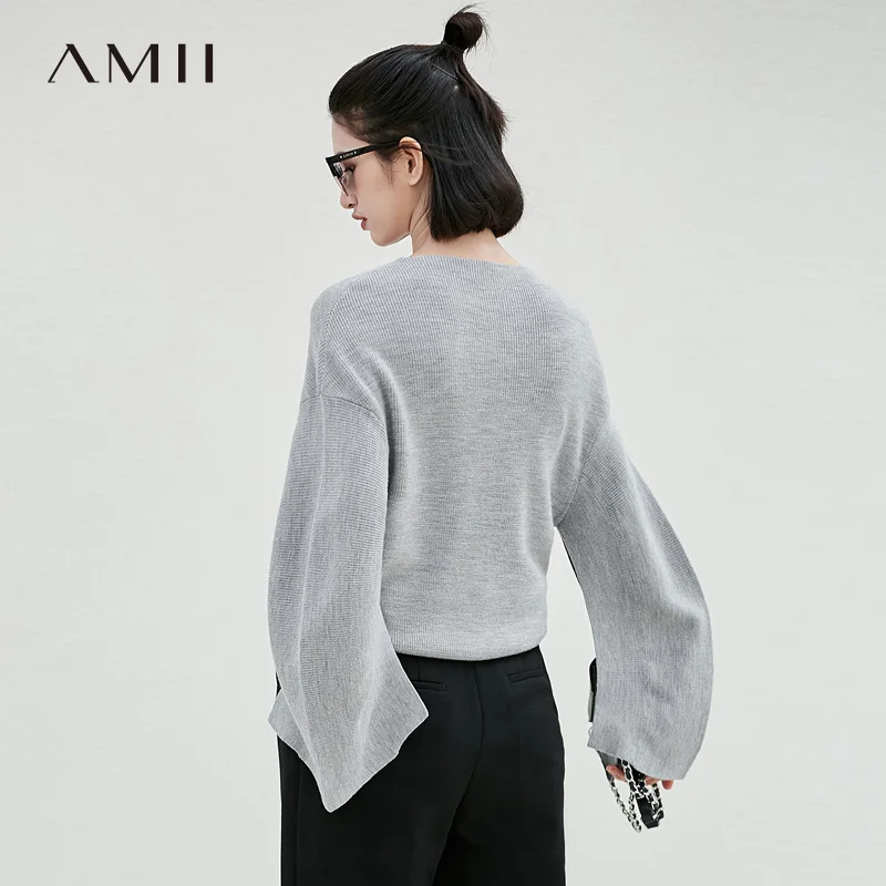Минималистичный пуловер Amii, свитер, зимний женский Однотонный женский шерстяной свитер с вырезом лодочкой и рукавами мениска, 11777233