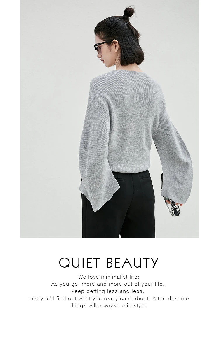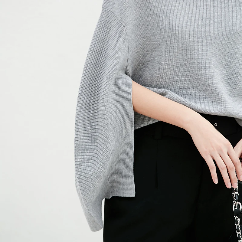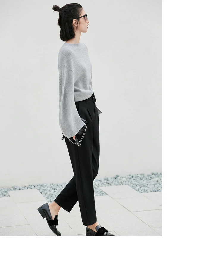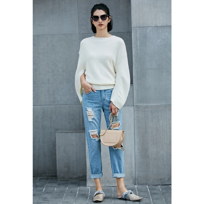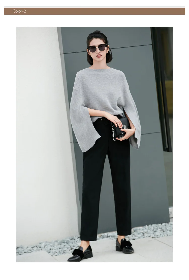Минималистичный пуловер Amii, свитер, зимний женский Однотонный женский шерстяной свитер с вырезом лодочкой и рукавами мениска, 11777233