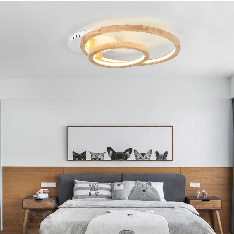 Деревянный светодиодный потолочный светильник в скандинавском стиле, современный светильник для гостиной, спальни, креативный Индивидуальный Круглый светодиодный потолочный светильник