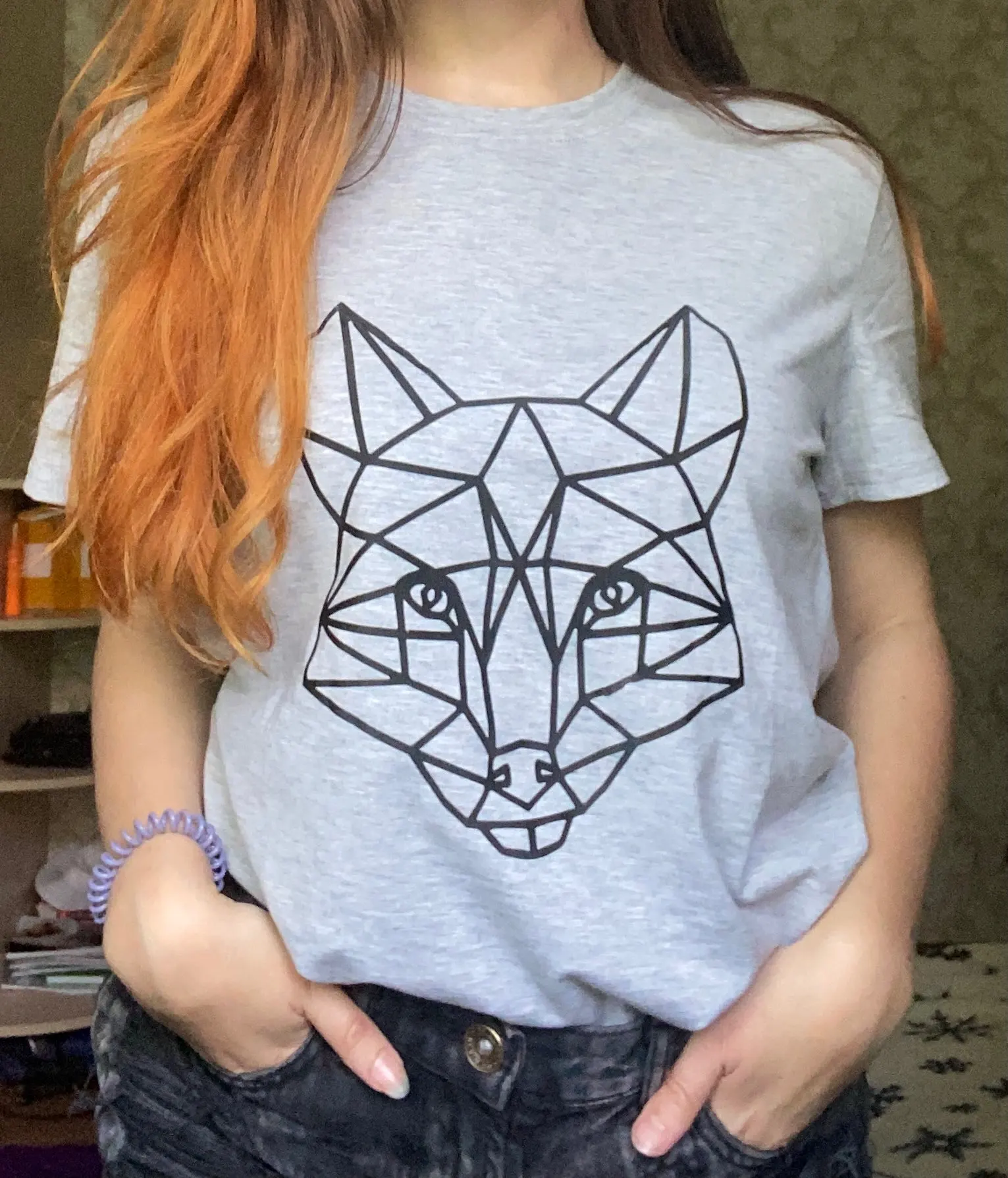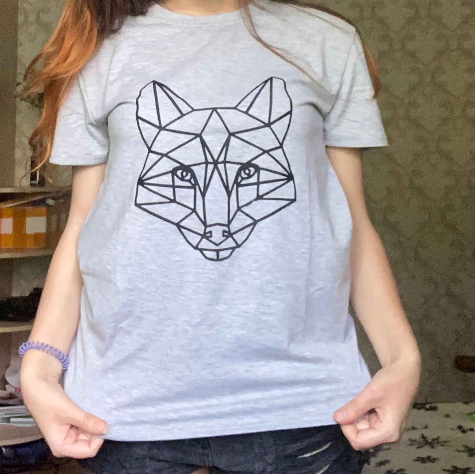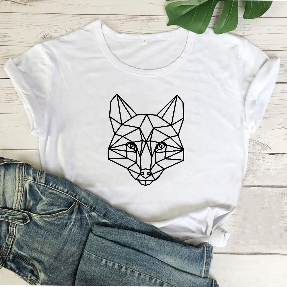 Женская хлопковая футболка, с геометрическим рисунком лисы, с коротким рукавом, белая, с круглым вырезом