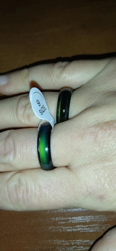 доставка быстрая, одно кольцо меняет цвет, а второе бракованное - почти не меняет, только немного по краям, а середина остаётся черной все время. на руке смотрится грубовато, хотя внутри само кольцо идеально гладкое. больше подойдёт для пожилых.
