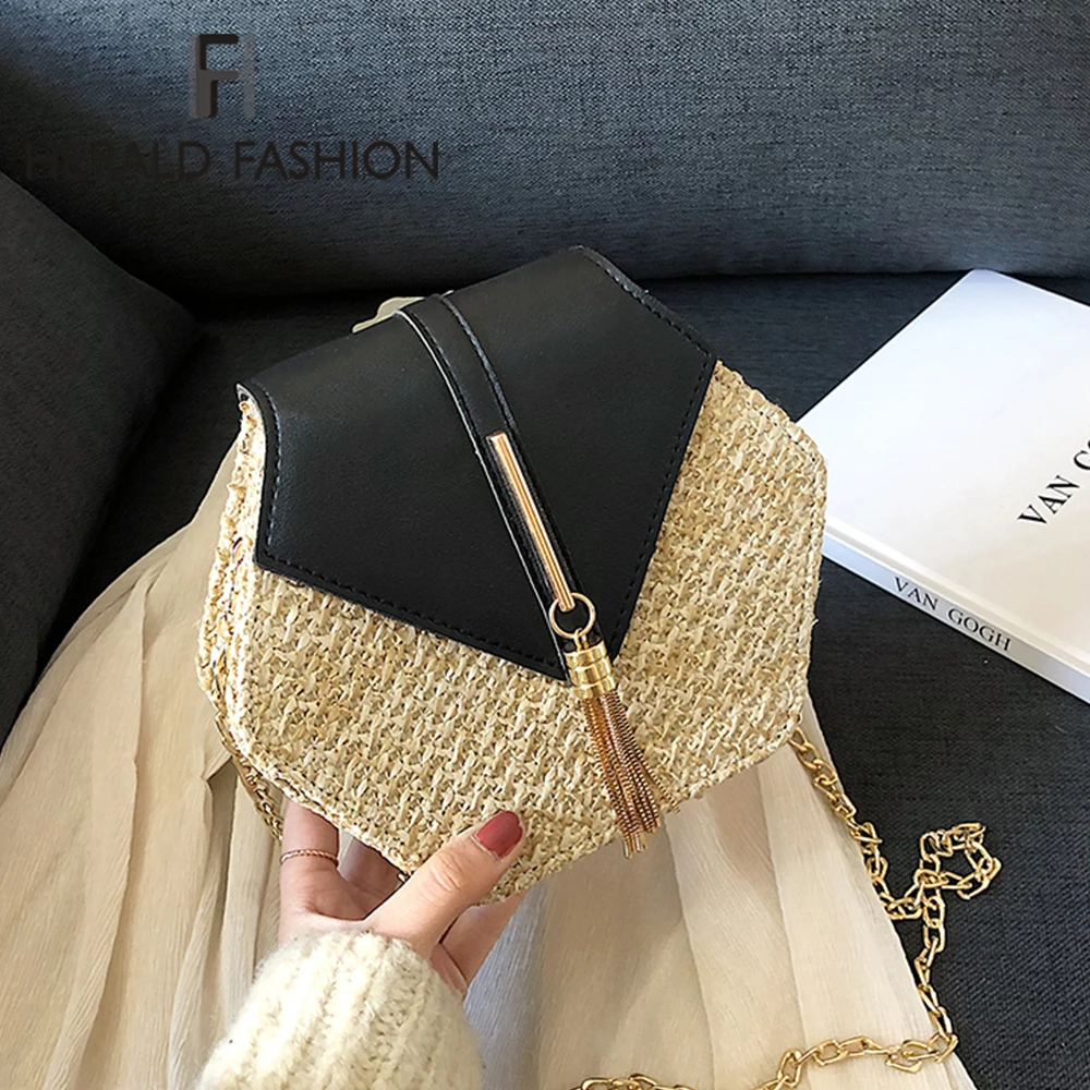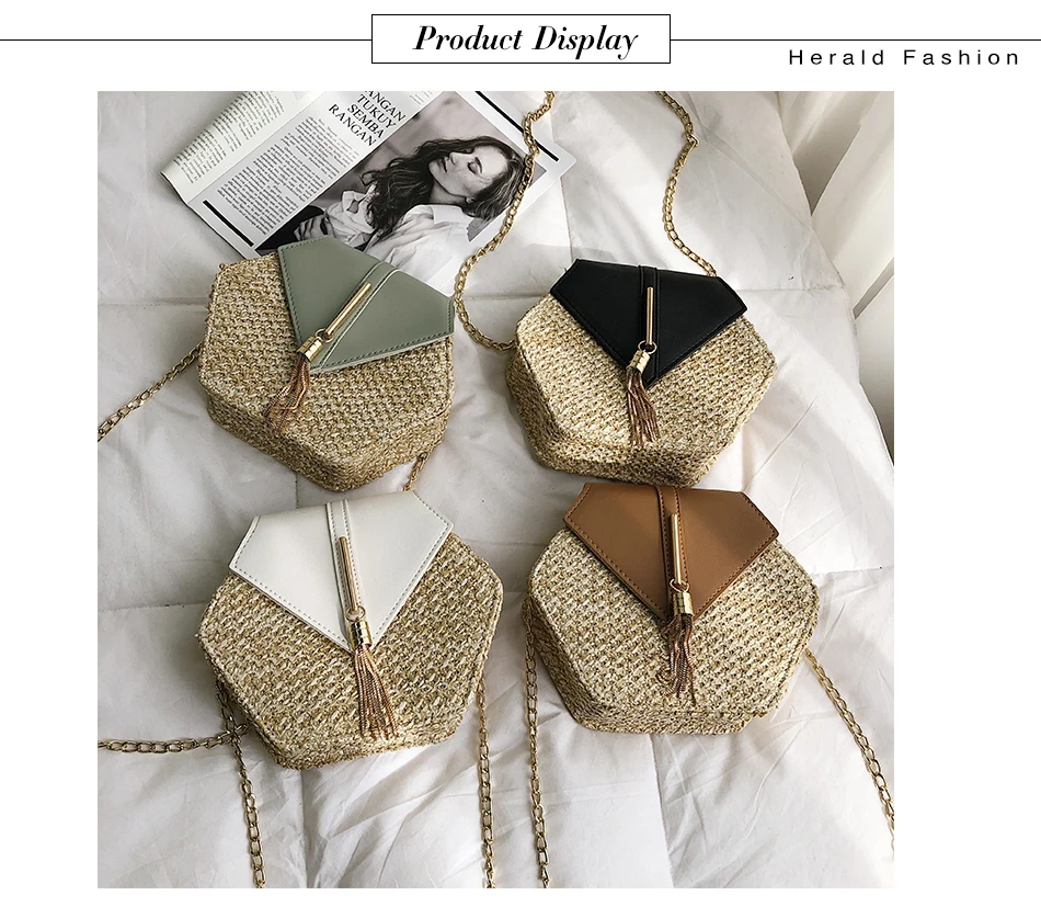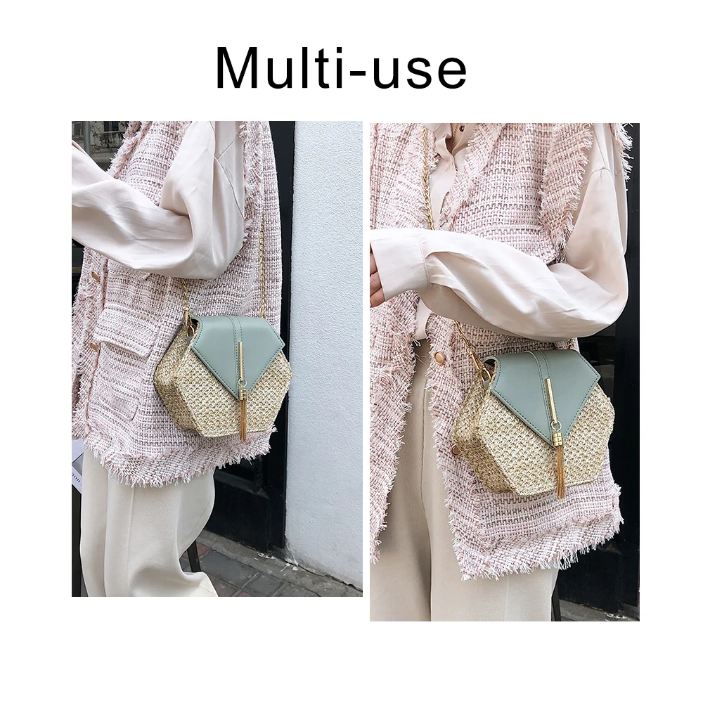 Соломенная кожаная сумочка Mulit для женщин, Стильная летняя плетеная шестиугольная пляжная круглая богемная сумка на ремне
