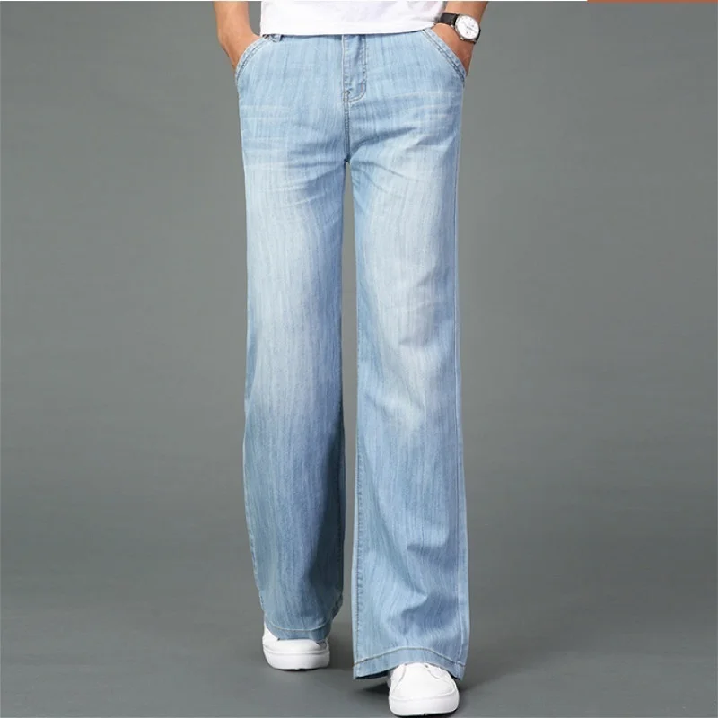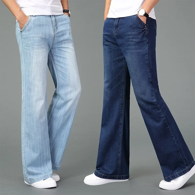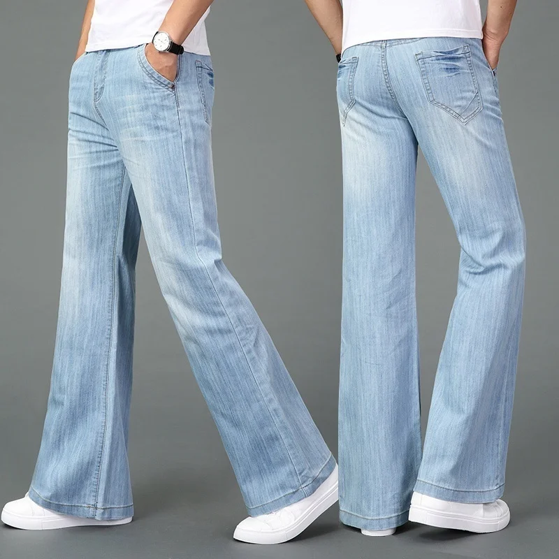 Джинсы-клеш мужские в стиле ретро, с широкими штанинами, 923-375