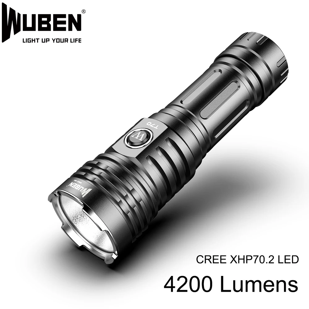 WUBEN T70 высоколюменный фонарик 4200LM CREE светодиодный водонепроницаемый перезаряжаемый фонарь Type-C с 26650 литий-ионной батареей для отдыха на открытом воздухе