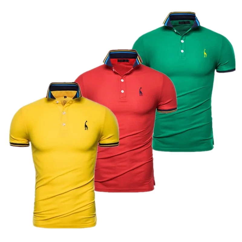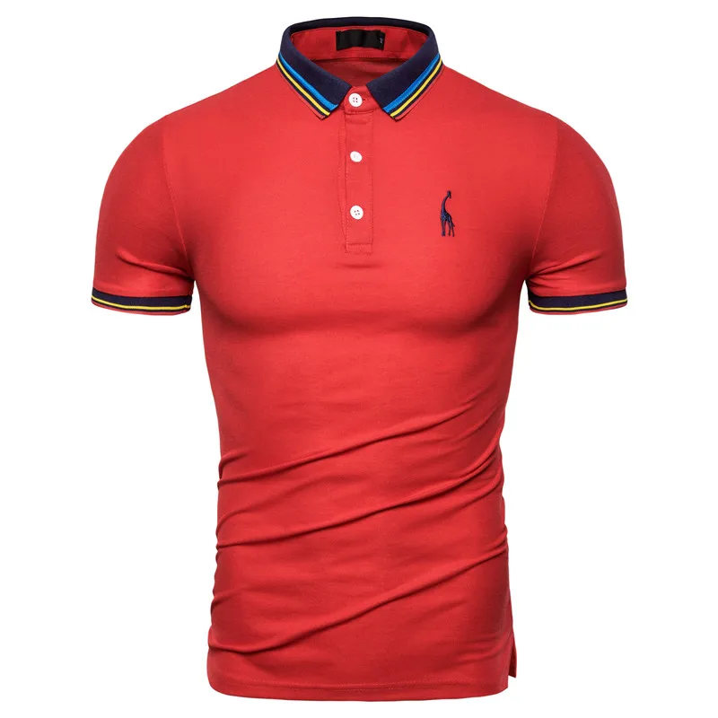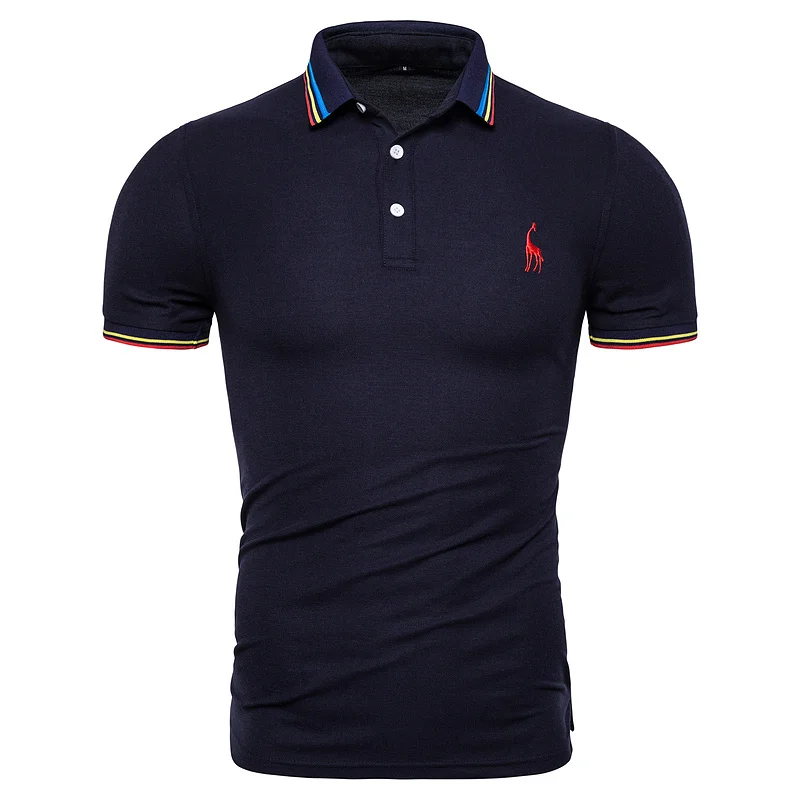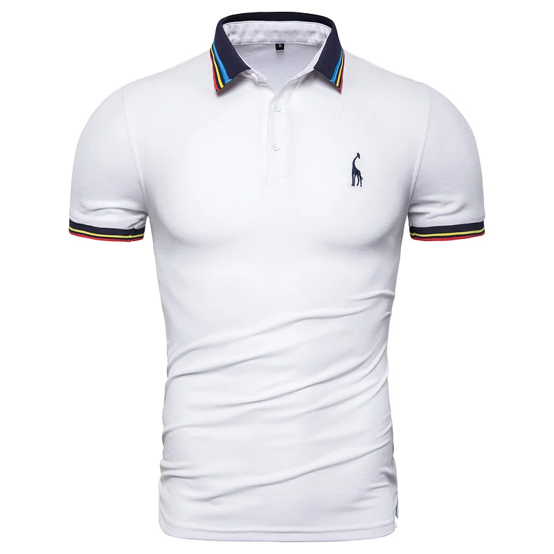 Мужская хлопковая рубашка-поло, Однотонная рубашка-поло с коротким рукавом и вышивкой оленя, модная рубашка-поло с жирафом, Новинка лета 2019