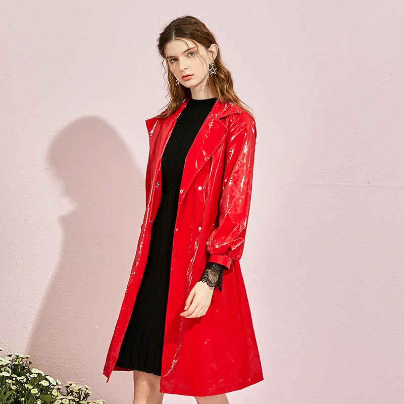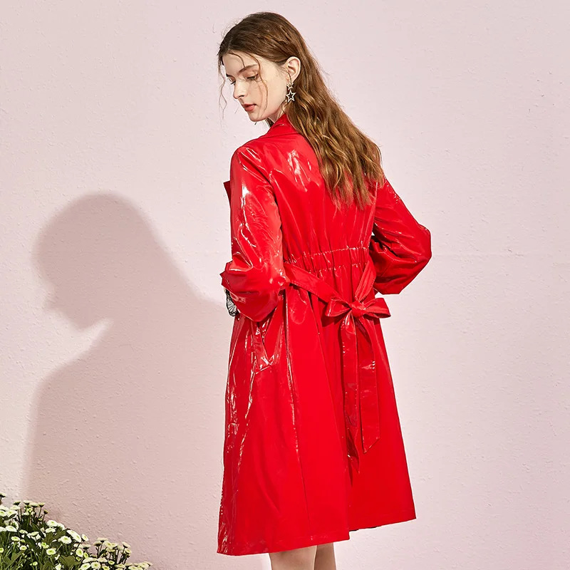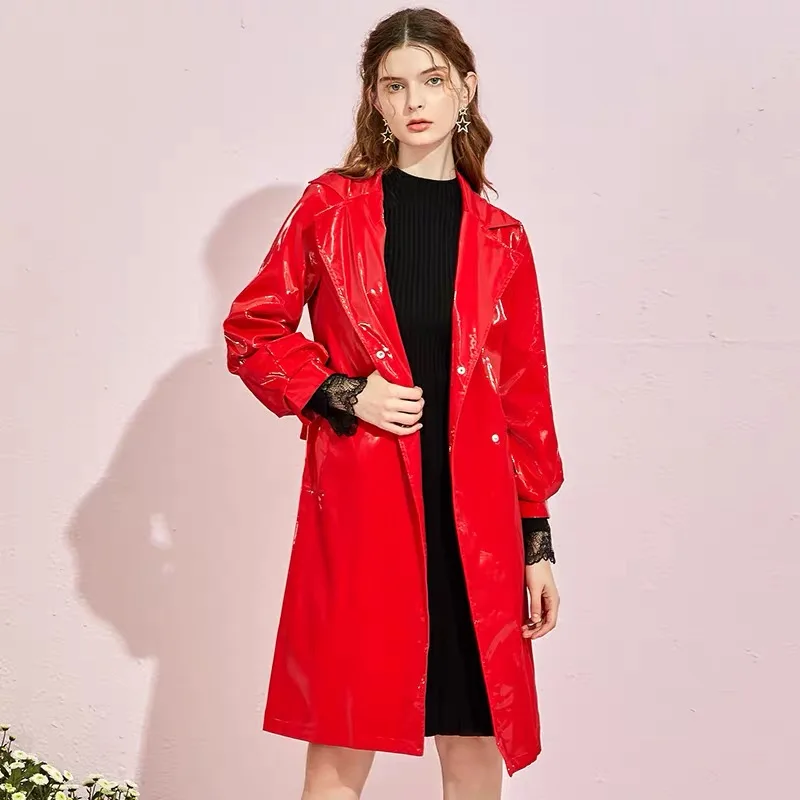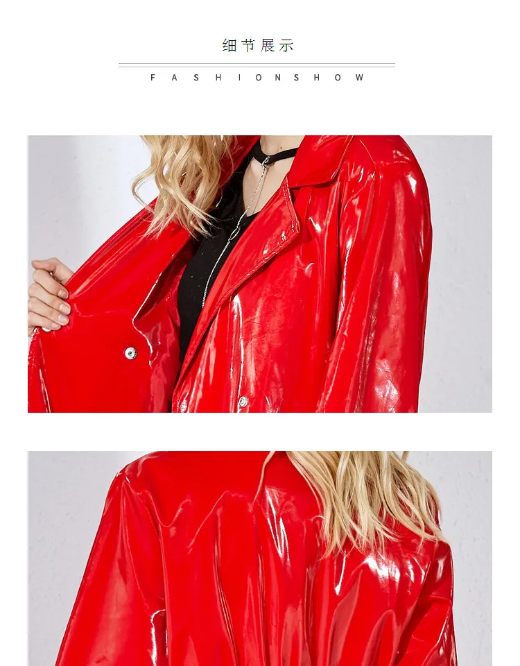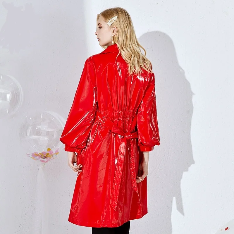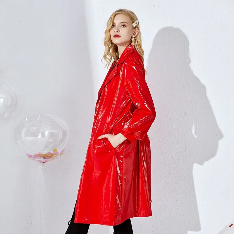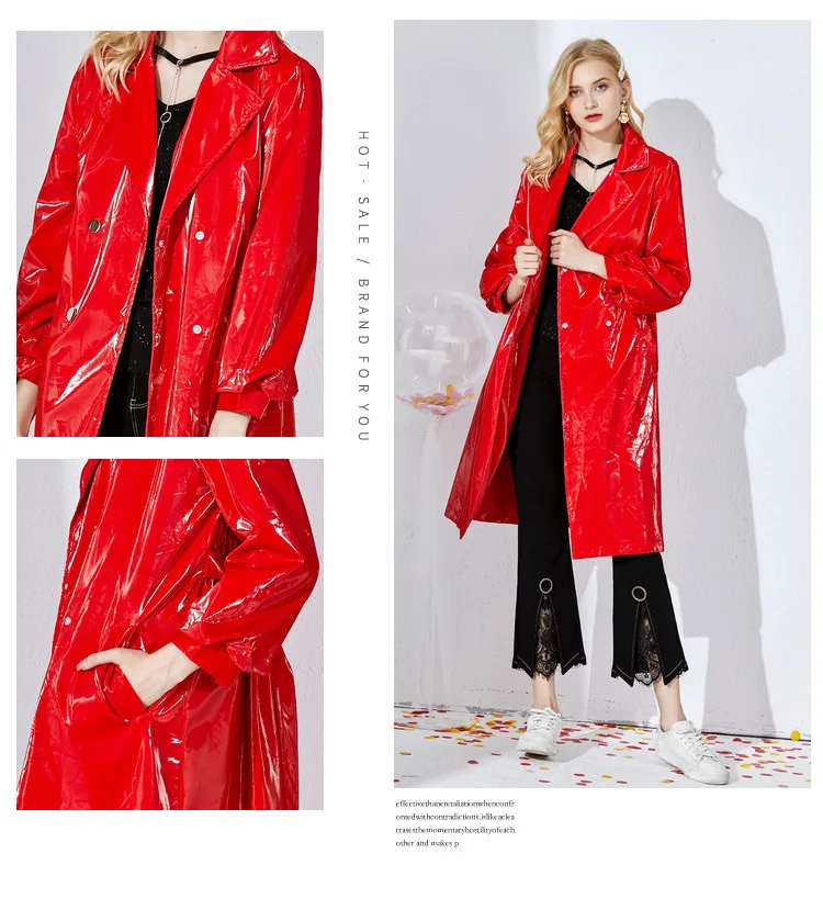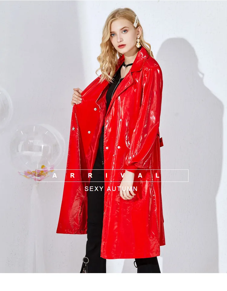 Модная Блестящая Глянцевая двубортная куртка из искусственной кожи, Женская длинная ветрозащитная куртка большого размера из лакированной кожи F1100