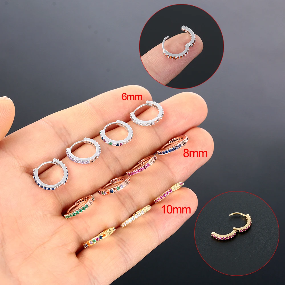 Модные CZ Пирсинг уха панк Rook Huggie Обруч Серьги Серебро Золото Розовое Золото Нос кольцо спиральный для хряща Tragus девушки ювелирные изделия тела