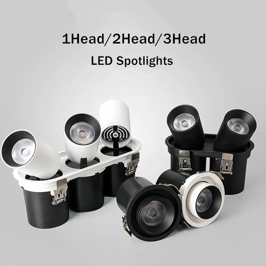 Растягивающийся встраиваемый светильник, светодиодный потолочный светильник с однойдвойной головкой, телескопическая вращающаяся точечная лампа для гостиной, ресторана