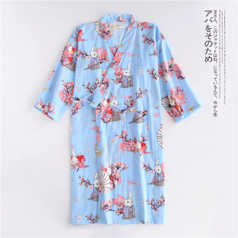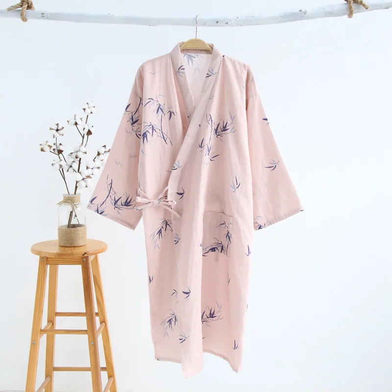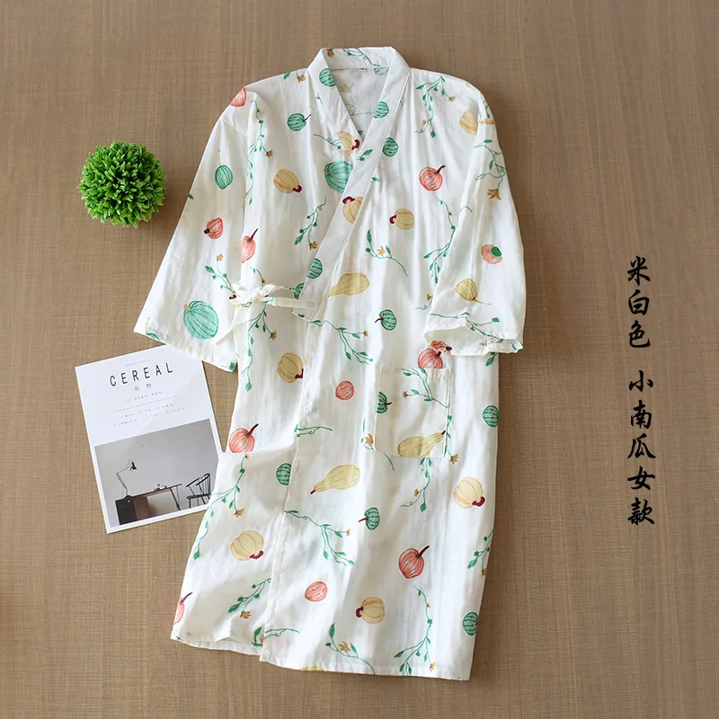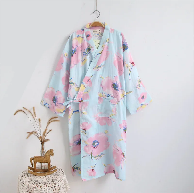 Халат-кимоно из тонкой Марли, хлопковый Халат в японском стиле, длинная ночная рубашка, одежда для отпаривания, на лето