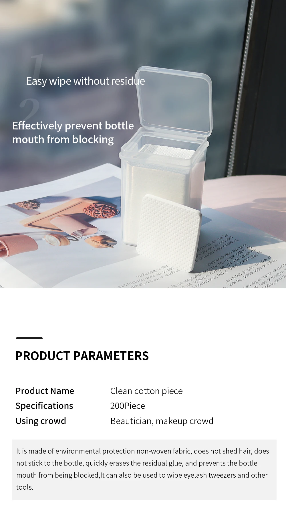Салфетки хлопковые безворсовые 200 шт., средство для удаления клея ...