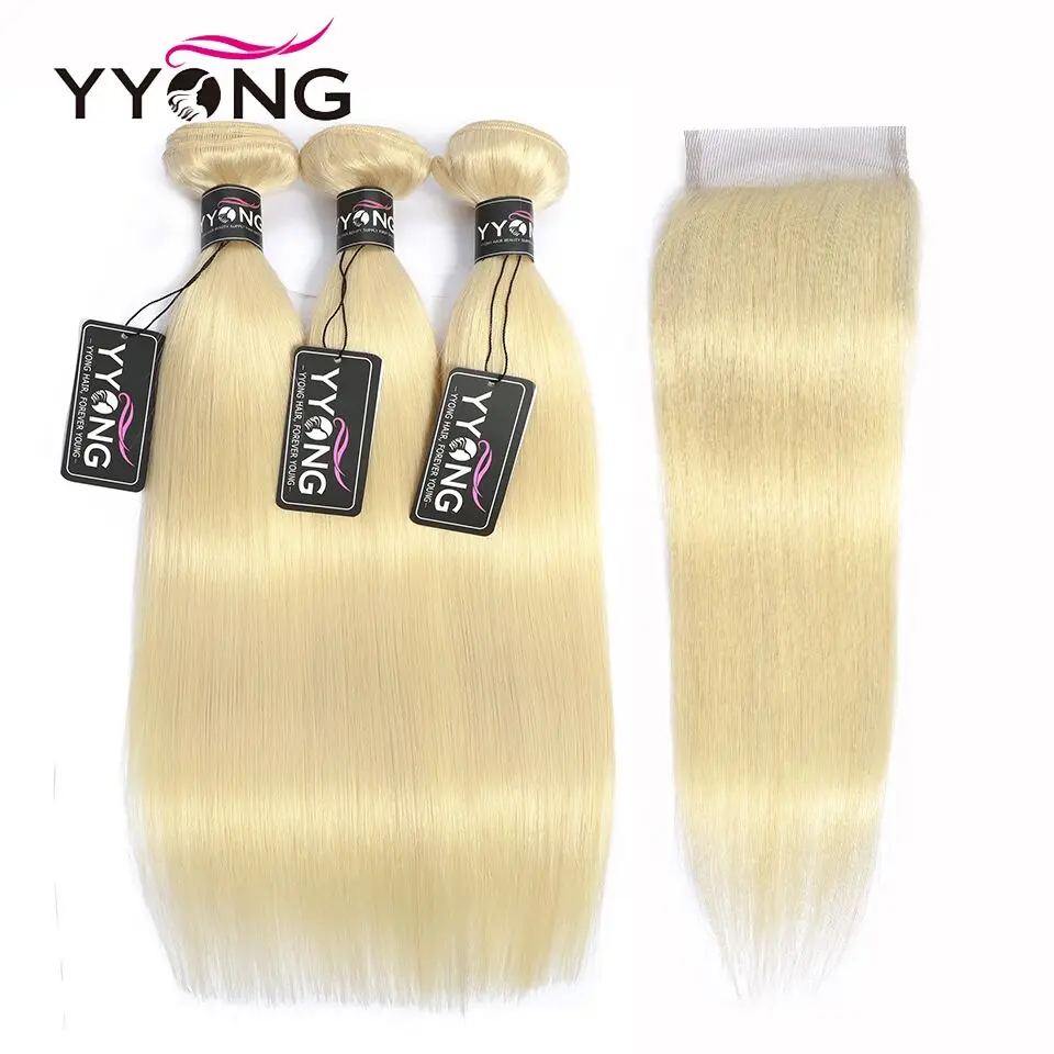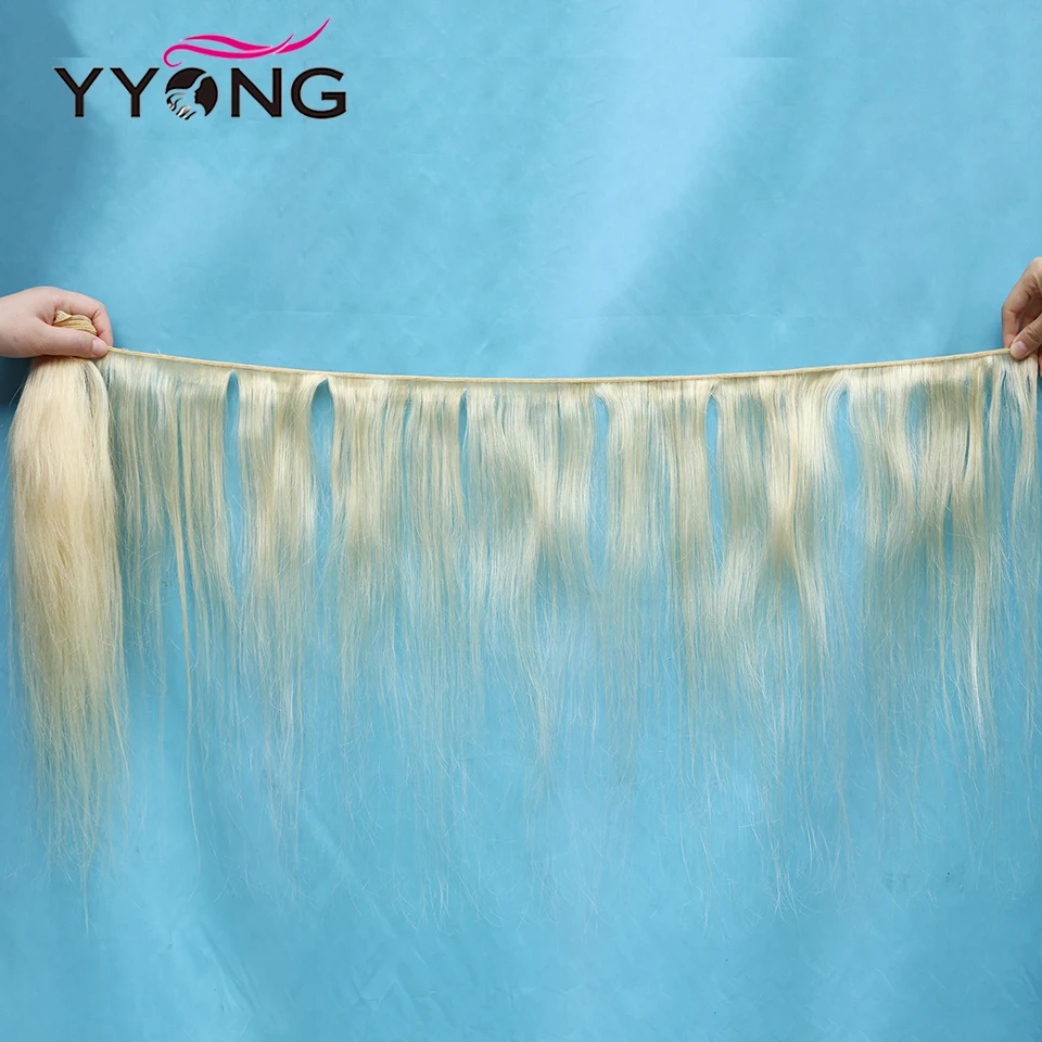 Пряди блонд YYong, прямые бразильские человеческие волосы Реми, 3 пряди и застежка, 613 пряди с застежкой