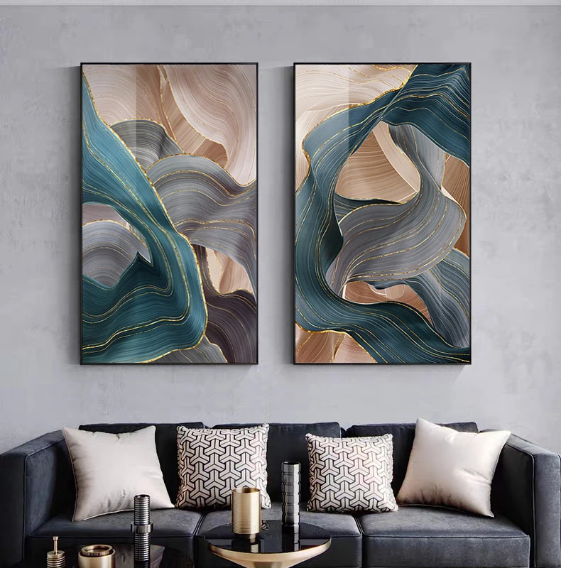Постеры с абстрактной роскошной лентой, современные настенные картины для гостиной, спальни, золотые художественные постеры, Скандинавская Картина на холсте