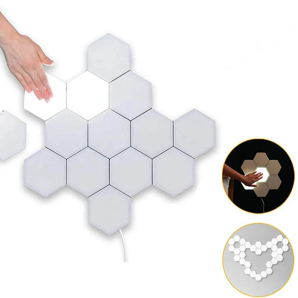 Сенсорное освещение Настенный светильник включается и выключается человеческим прикосновением. Емкостный датчик используется в качестве переключателя, который включает или выключает каждый компонент, когда ваше тело прикасается к поверхности. Эта конструкция позволяет вам эффективно скользить туда, куда они хотят светильник. Технологический дизайн Это модульный настенный светильник с шестиугольной конструкцией. Используйте шестигранную дискету, чтобы сделать любую конструкцию в соответствии с вашими потребностями, а затем включите и выключите ее, прикоснувшись к ней. Минималистичный стиль, безусловно, привлечет внимание и подойдет вашему дому. Сделай Сам свое собственное пространство Используйте магнитные края для соединения света, чтобы структура, наиболее подходящая для вашего интерьера. Пусть этот умный светильник сделает ваш дом ярким.