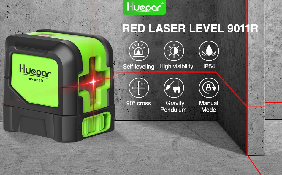 Лазерный уровень Huepar красные лучи поперечная линия самонивелирующийся вертикальный и горизонтальный измерительный инструмент 9011R с магнитным основанием