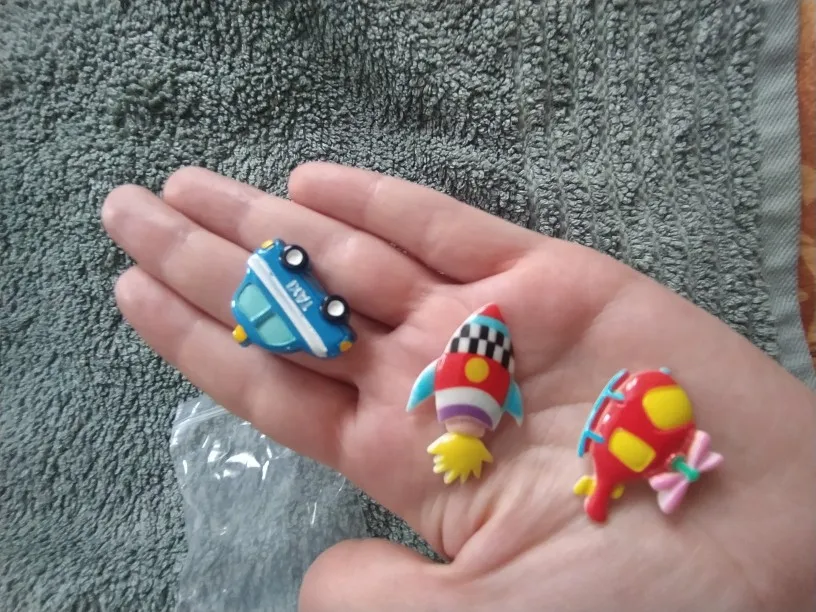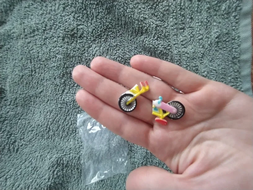 Очень очень очень маленькие. Куда смотрела, не знаю, в отзывах же писали, что маленькие. Сын любит играть с магнитиками у холодильника, но такие маленькие нельзя давать. Велосипед пришёл разбитый. Приложили подарок уточку размером с ноготок, что с ней делать? заказ шёл почти 2 месяца