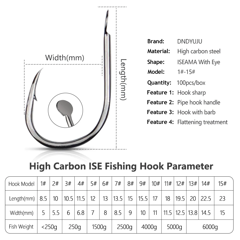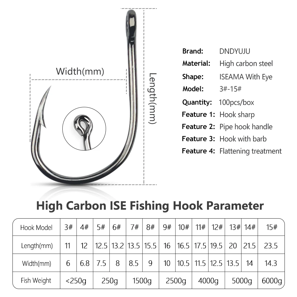 DNDYUJU 100 шт.кор. (Size3-12) набор рыболовных крючков с бородкой, одинарный круг, крючок для ловли карпа, рыболовные аксессуары из высокоуглеродистой стали