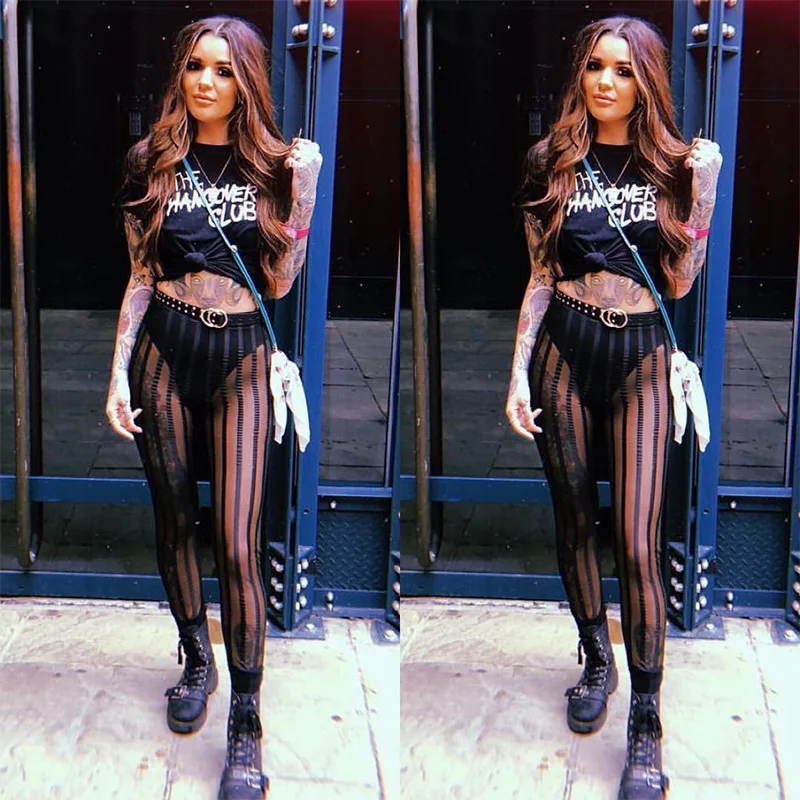 Женские леггинсы с пуш-апом, летние, сексуальные, Клубные, готические, черные, серые, тонкие, сетчатые, в полоску, леггинсы, повседневные