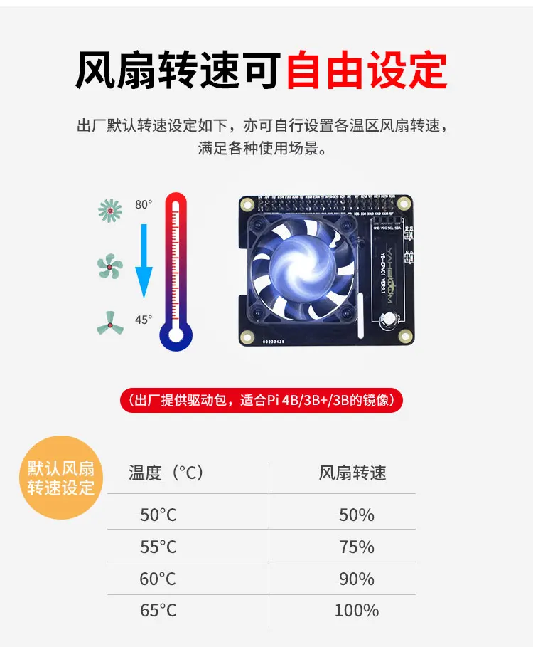 Интеллектуальная Плата расширения вентилятора контроля температуры для Raspberry Pi, супер тепловыделение, поддерживает Raspberry Pi 4 и 3