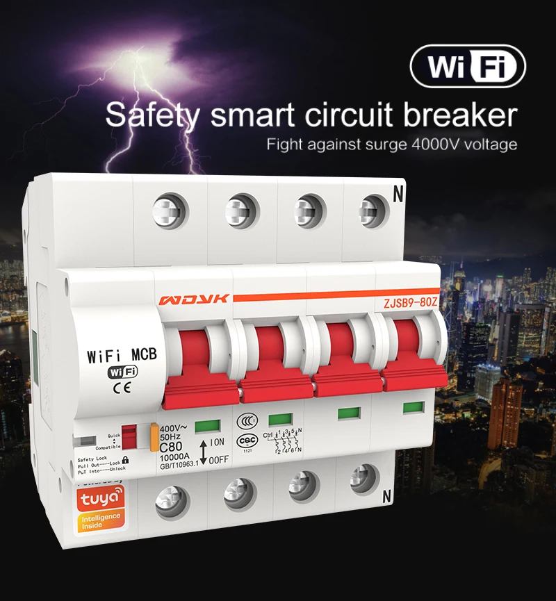 Умный Автоматический выключатель, 1P, 2P, 3P, 4P, защита от перегрузки, таймер, управление через приложение eWeLink Tuya, поддержка Alexa
