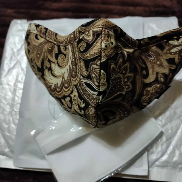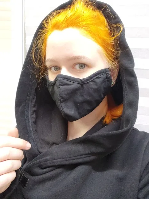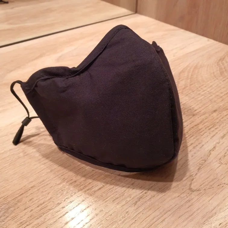 Отличная маска, объёмная, не давит, полностью закрывает. Пошив очень качественный, регулируемые резинки. Материал плотный, но в ней легко дышать. Есть карман для вкладышей-фильтров, зажим для носа и вставка, крепящаяся на двусторонний скотч.