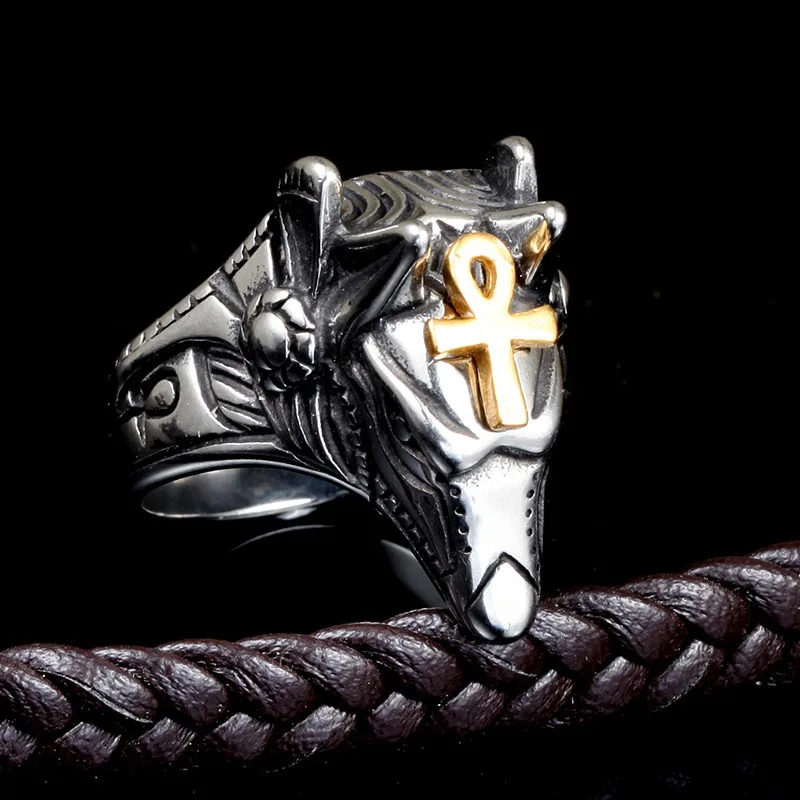 Кольцо с египетским крестом Анубис из нержавеющей стали для мужчин ...