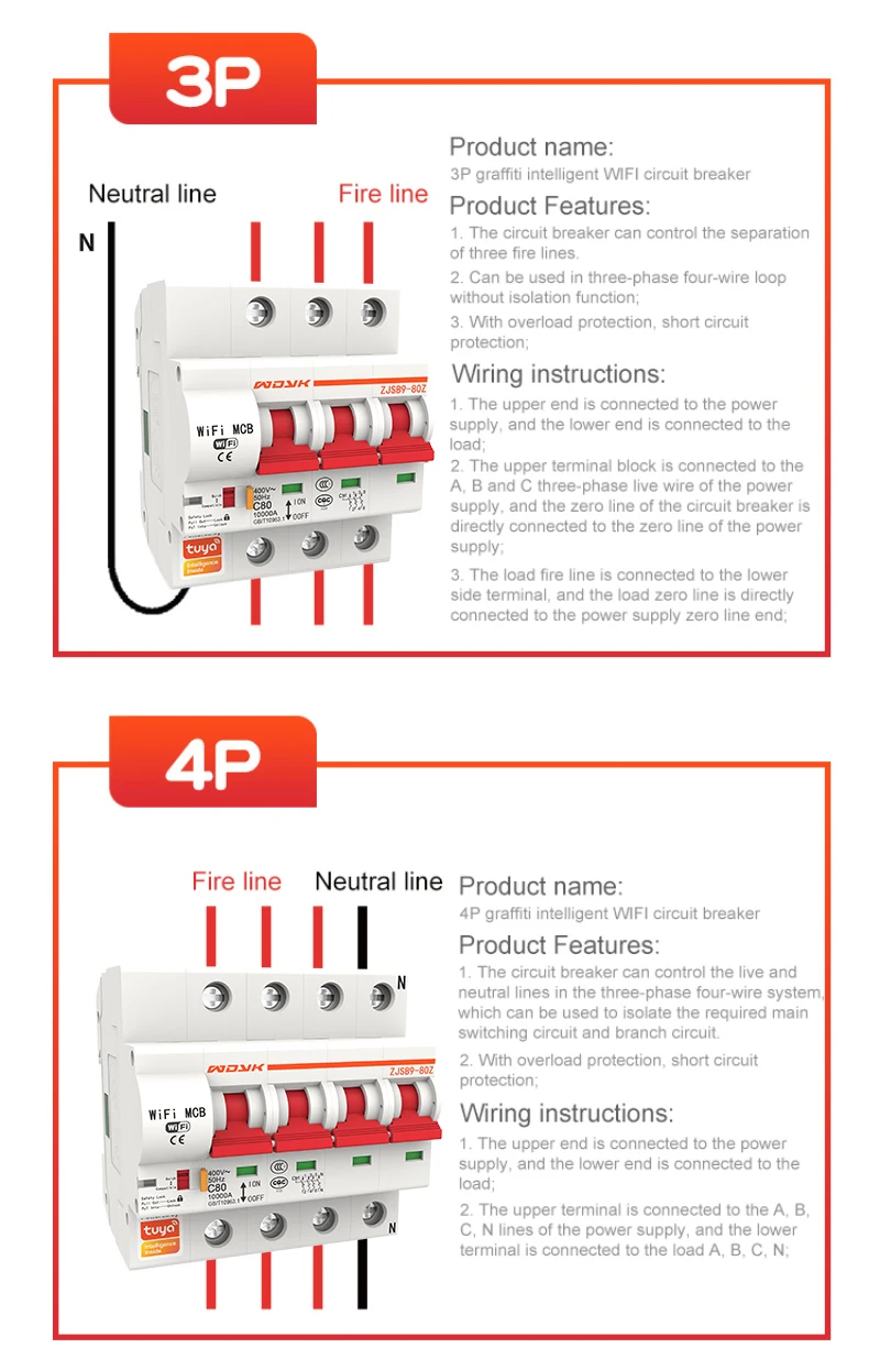 Умный автоматический выключатель eWelink Tuya, 1234P, 2,4 ГГц, Wi-Fi, 16 А, 100 А